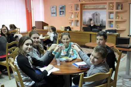 И снова колокольчики нашей "Звонницы" радостно прозвучали в стенах Гомельского областного Дворца творчества Детей и молодёжи "Юность". 10 декабря знатоки сборной команды Рогачёвского благочиния, которая включала игроков воскресных школ прихода храма Святого благоверного князя Александра Невского в г. Рогачёве и прихода храма Покрова Пресвятой Богородицы в аг. Довск, приняли участие в отборочном туре интеллектуальной игры "Фавор" среди воспитанников воскресных школ Гомельской епархии. Игра, которую провёл руководитель интеллектуального клуба "Белая рысь" Леонид Климович, состояла из двух частей "Медиа-азбука" и "Что? Где? Когда?". На протяжение 2-х часов 17 команд боролись за сертификат на право участия в международном турнире. Наши ребята: Слюньков Андрей, Храменков Тимофей, Авдеева Вера, Троцкая Надежда и Барейшева Ксения - показали хорошие знания основ православной культуры и стали 5-ми в рейтинге. Молодцы, ребята! А группа поддержки совместила игру и отдых, совершив прогулку по зимнему саду.
