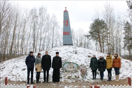 А после митинга группа молодых патриотов отправилась на Курган Славы, чтобы там, на месте, где шли бои, проливалась кровь и гибли люди, зажечь свечи и поклониться в память о жертвах. С ними поехал и настоятель православного храма иерей Виталий Лехнович. Возле Кургана Славы парни и девушки представили, как в похожие холодные дни поздней осени 1943 года форсировали Сож и отбивали врага назад такие же большей частью молодые люди, но только в военной форме. Сейчас они уже могли бы быть их дедами, но тысяча из них так и остались парнями навечно - погибли на обоих берегах реки. Их приняли кормянская земля и вода ныне спокойно текущего Сожа.