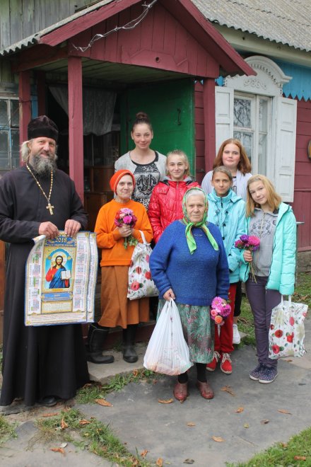 Последняя неделя сентября в Рогачёвском благочинии прошла под знаком внимания к самым уважаемым людям, за плечами которых нелёгкая жизнь. В каждом приходе в воскресный день 1 октября настоятели поздравили самых умудрённых годами людей, пожелав им крепости, душевного мира и здоровья. Настоятель прихода храма Святого Духа д. Дворец протоиерей Владимир Янчесов с ребятами, изучающими на факультативных занятиях основы православной культуры, посетили и поздравили с Днём пожилого человека семьи д. Дворец, в которых проживают инвалиды. Ребята вручили цветы, продуктовые наборы и православные календари на 2018 год. Настоятель прихода храма Покрова Пресвятой Богородицы агрогородка Довск иерей Георгий Орловский и воспитанники воскресной школы прихода посетили накануне праздника своих старейших прихожанок. Много интересного и поучительного из беседы с ними смогли почерпнуть ребята, ведь их жизненный путь был связан с историей храма и родного села. В деревне Болотня настоятель протоиерей Анатолий Апончик встретился со старейшими жителями населенного пункта. Молодёжь прихода святого благоверного князя Александра Невского в г. Рогачёве накануне праздника помогла управиться с огородными работами Ивановой Ольге Алексеевне - старейшей сестре милосердия сестричества в честь святой преподобной Евфросинии Полоцкой, которая в этом году отметила 80 - летний юбилей.