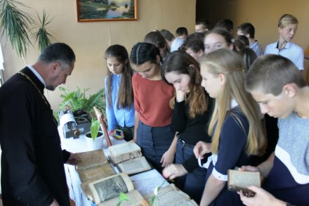 В гимназии городского поселка Корма в ходе проведения Недели белорусской письменности состоялась выставка старинных богослужебных книг, организованная приходом храма Святителя Николая Чудотворца при участии молодого педагога, краеведа, учителя истории Ивана Игнатенко. Учащиеся смогли ознакомиться с экспонатами, в числе которых были Псалтирь, изданная более двух сотен лет назад, Библия, которой пошел сто первый год, такими же по возрасту молитвословами. С интересом рассматривали посетители выставки и факсимильное издание Библии Франциска Скорины. Ознакомил с книгами и провел беседы о том, для чего они предназначены, настоятель храма иерей Виталий Лехнович. В течение дня все учащиеся и педагоги Кормянской гимназии ознакомились с экспозицией и получили ответы на интересующие их вопросы от священника.