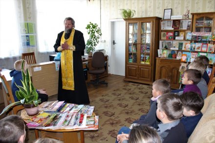 20 апреля в Рогачёвской библиотеке №1 протоиерей Владимир Янчесов, настоятель прихода храма Святого Духа д. Дворец, провёл беседу "Проснись, душа!" с учащимися 5 класса средней школы №4 имени В.С.Величко. До начала беседы ребята смогли познакомиться с детскими православными книгами, представленными на выставке "Православная азбука", которую подготовили сотрудники библиотеки. Отец Владимир рассказал ребятам о скорбных событиях, предшествовавших Воскресению Господа нашего Иисуса Христа, и объяснил смысл Пасхи. Затем ребята проверили свои знания по православной культуре в небольшой викторине, после которой батюшка наградил всех участников.