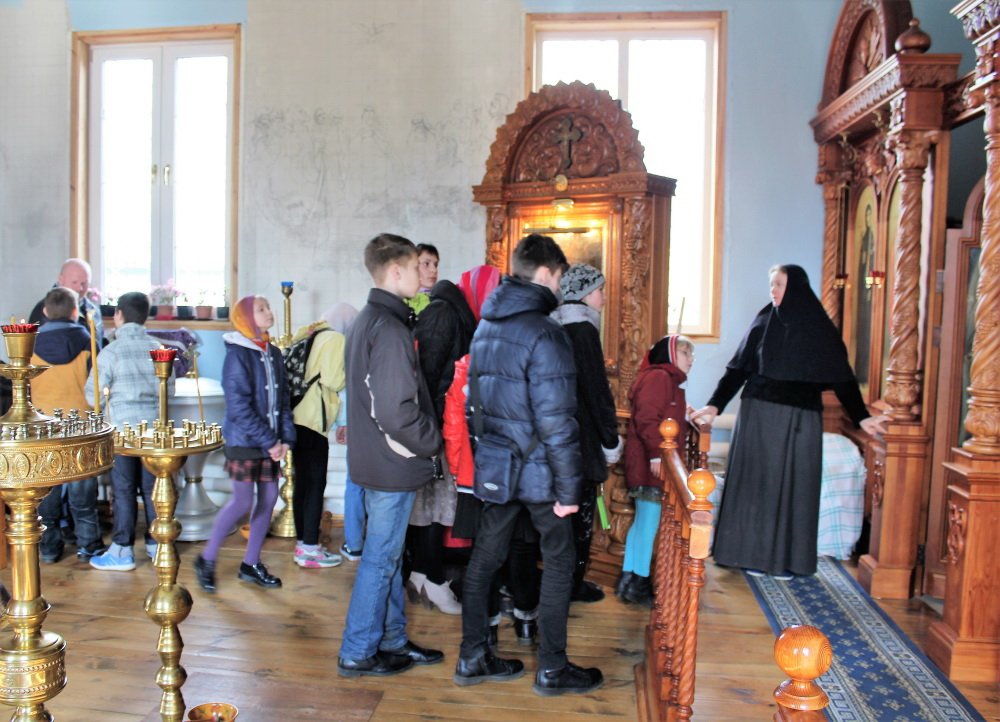 26 марта учащиеся старшей группы воскресной школы «Звонница» прихода храма святого благоверного князя Александра Невского в г. Рогачёве посетили Казимировский Свято-Успенский женский монастырь. Матушка Иулиания познакомила ребят с непростой историей этой скромной обители, которая была основана как униатский базилианский монастырь ещё в начале XVIII века. В повествовании о давно минувших событиях разворачивалась перед ребятами история родного края. Связывает прошлое и настоящее монастыря чудотворная икона Божией Матери «Казимировская», перед которой с благоговением смогли помолиться о ближних юные паломники и их педагоги. Немалое удивление вызвал рассказ о буднях обители: матушки сами занимаются и строительством, и росписью храма, и работают на поле, и за живностью ухаживают, и даже "общежитие для скворцов" соорудили сами. Но главное их дело - молитва. А ещё под руководством матушки Анастасии ребята с восторгом попробовали себя в роли звонарей. И, конечно, дети были рады познакомиться с обитателями монастырского подворья: покормили кур, уток, а также тёлочку Ласточку.
