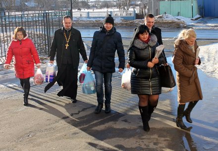В агрогородке Довск ребята вместе с настоятелем прихода храма Покрова Пресвятой Богородицы иереем Георгием Орловским посетили престарелых пациентов участковой больницы. Не оставили без искренних поздравлений и подарков своих пожилых людей и в приходе храма Святого Духа д. Дворец.