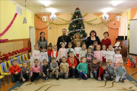 Святочные дни в городском поселке Корма завершились традиционным утренником в детском саду №6. Рождественский праздник со стихами, песнями, играми и народным обрядом колядования подготовили педагоги и воспитанники этого дошкольного учреждения. Детям рассказали о Рождестве Христовом, о традициях Праздника. Настоятель прихода храма Святителя Николая Чудотворца священник Виталий Лехнович поздравил всех собравшихся в украшенном зале детского сада, высказал добрые пожелания и поблагодарил педагогов за работу по духовно-нравственному воспитанию детей, за длительное сотрудничество прихода и учреждения образования. А также вручил подарки: сладости и развивающую игру.