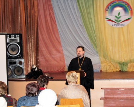 13 декабря в средней школе №6 г. Рогачёва состоялось родительское собрание на тему «Безопасность ребёнка». В нём принял участие протоиерей Александр Атрощенко, священнослужитель храма святого благоверного князя Александра Невского. В своём выступлении он отметил, что корень многих наших бед кроется в разрушении традиционных устоев семьи. «Мы можем быть прекрасными работниками, победителями трудовых соревнований, но всё больше трудностей мы испытываем с воспитанием детей. Почему так происходит? Мы работаем, стараемся обеспечить наших детей, чтобы у них всё было, но не уделяем внимания нравственной стороне. Поэтому всё чаще слышим про кризис семьи. Откуда он вырастает, этот кризис? Мы позволяем нашим детям всё. Мы готовы отдать ребёнку самое лучшее и растим эгоистов, не готовых к семейной жизни. Как следствие возникают проблемы: огромное количество разводов, брошенные дети, падение рождаемости, так называемые «гражданские браки», хотя правильнее было бы называть блудные сожительства. Это угроза семье традиционного уклада. Чтобы брак был крепким, нужно научиться жить ради другого человека: муж ради жены, жена ради мужа. И своим примером учить детей. Ведь ребёнок учится у своих взрослых родителей. Если мы сами не живём правильно, как мы можем требовать это от детей. Необходимо больше времени проводить с детьми, приучать их к труду. Тогда семья будет иметь единство духа». Накануне зимних каникул, новогодних и рождественских праздников о безопасности близких напомнили родителям заместитель прокурора В. Е. Чугунов, начальник спасательной станции Л. В. Крупнев и инспектор по делам несовершеннолетних Ж. И. Гурская