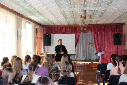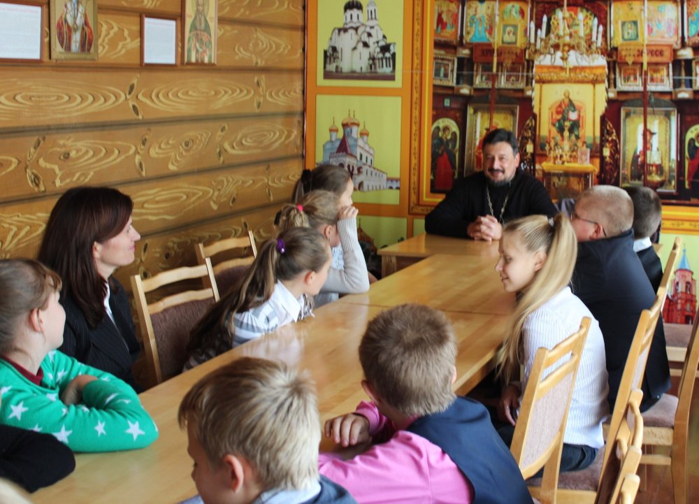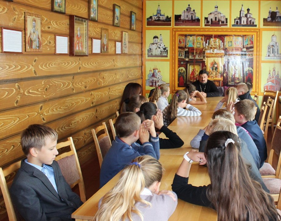 7 октября в кабинете духовно-нравственного воспитания СШ №4 г. Рогачёва состоялась беседа протоиерея Николая Степанова с учащимися 6 «А» класса. Разговор шёл о духовном и телесном здоровье. Отец Николай объяснил школьникам, что многие телесные болезни начинаются с несоблюдения «духовной гигиены». Как наше тело нуждается в чистоте и правильном питании, так и душа. Питаем мы душу через общение с Богом в молитве и чтении духовных книг, а очищаем покаянием. Ребята слушали с большим вниманием, наперебой задавали вопросы и даже обещали прочитать житие своего святого покровителя.