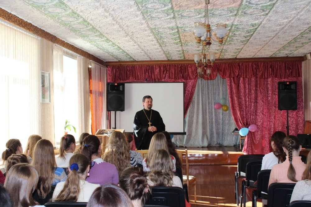 13 октября, накануне праздника Покрова Пресвятой Богородицы, протоиерей Александр Атрощенко, священнослужитель прихода храма святого благоверного князя Александра Невского, встретился со студентами Рогачёвского педагогического колледжа. Он рассказал первокурсницам о Пресвятой Богородице как Матери Господа нашего Иисуса Христа, об истории праздника. Ведь не случайно в нашей стране к нему приурочен и День матери. Быть мамой непросто и ответственно. Девушке необходимо готовиться к этой роли, строить свою жизнь разумно.Не обошли вниманием и важные темы о том, как необходимо готовиться к семейной жизни, как выбирать вторую половинку и строить отношения в семье, чтобы она была счастливой. На прощание отец Александр поздравил всех с наступающим праздником, пожелал Божией помощи в создании крепких, здоровых семей и раздал информационные буклеты.