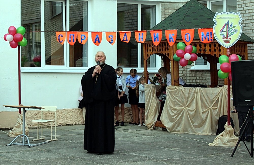 1 сентября 2016 года священнослужители Рогачёвского благочиния разделили общую радость Дня знаний с учащимися, педагогами и родителями. Настоятель храма святого благоверного князя Александра Невского протоиерей Алексей Смотрицкий по традиции принял участие в торжественной линейке, посвящённой Дню знаний в СШ №4 г. Рогачёва. Обращаясь к детям, учителям и гостям праздника, он отметил: « Нам предстоит большая работа, прежде всего – над самим собой. Ведь наша самая главная задача – стать настоящим человеком. Не только получить знания, но самое главное – получить верное направление своей жизни. Пойти по пути, ведущему к добру, к правде, к миру. Этого я желаю вам всем: и детям, и взрослым. Пусть на этом нелёгком, но таком радостном пути Господь помогает нам в наших трудах. Храни вас Господь и благословение Господне пусть будет на вас». Протоиерей Георгий Мартышевский поздравил педагогический коллектив и учащихся СШ №2, протоиерей Александр Атрощенко благословил на предстоящую учёбу учащихся СШ №6.