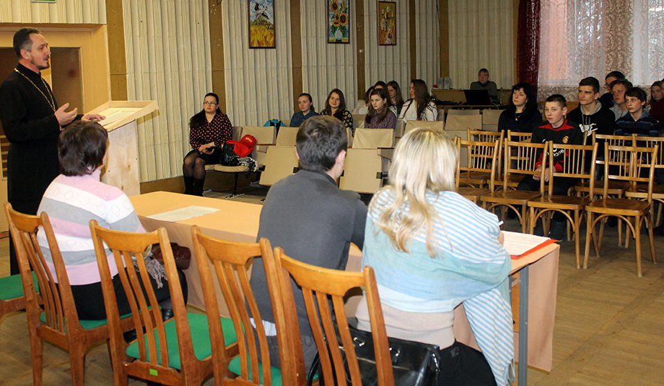 Встреча со старшеклассниками прошла в г.п. Корма в День борьбы с наркозависимостью. С 1987 года по инициативе ООН первый день марта является и днем борьбы с наркозависимостью и наркобизнесом. Тематическое мероприятие состоялось 1 марта в ГУ «Дом творчества детей и молодежи» Кормянского района. Его подготовил районный комитет «БРСМ» совместно с Комиссией по делам несовершеннолетних. Принял участие и настоятель храма Святителя Николая Чудотворца в г.п. Корма иерей Виталий Лехнович. На встречу, которая своей целью ставила обсудить проблему наркомании в молодежной среде, были приглашены учащиеся городских школ, среди них и состоящие на различных видах учета. Соответствующей информацией о последствиях употребления, хранения и распространения наркотических средств, об ответственности за это поделились с подростками первый секретарь Кормянского РК ОО «БРСМ» Дмитрий Ривоненко, заместитель председателя комиссии по делам несовершеннолетних Кормянского райисполкома Алеся Сосновская, оперуполномоченный группы наркоконтроля и противодействия торговле людьми Кормянского РОВД Сергей Чекалов, медработник наркологического и психиатрического кабинета Людмила Коченкова. Священник рассказал, как противостоять вовлечению в употребление наркотиков, не попадать в зависимости от них и от других плохих привычек, о том, как находить в жизни для себя важные и полезные занятия, чтобы жизнь была заполнена ими, а не пагубными страстями. Сделал акцент на хороших семейных отношениях и правильном выборе окружения, доверии, взаимной поддержке близких и друзей. В ходе беседы ребятам был продемонстрирован профилактический фильм «За гранью сознания», были розданы информационно-профилактические листовки.