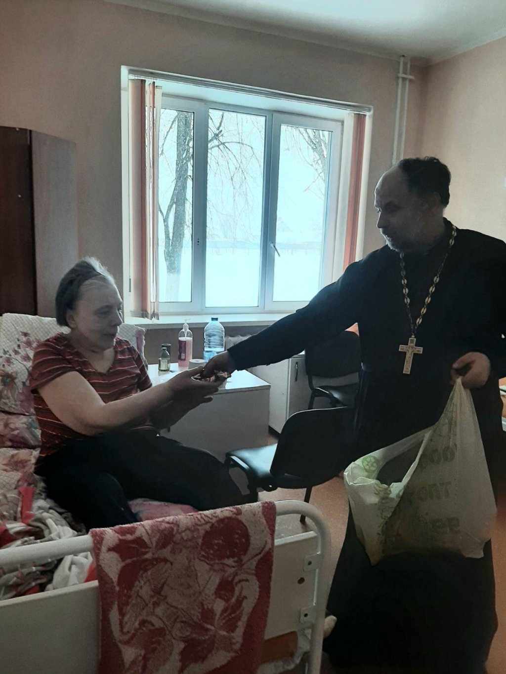 В светлые дни Рождества Христова, когда сердце особенно устремляется к делам милосердия, в рамках акции «От всей души» настоятель прихода храма Покрова Пресвятой Богородицы аг. Довск, протоиерей Виталий Левчук, посетил социальное отделение и хоспис Довской участковой больницы.
