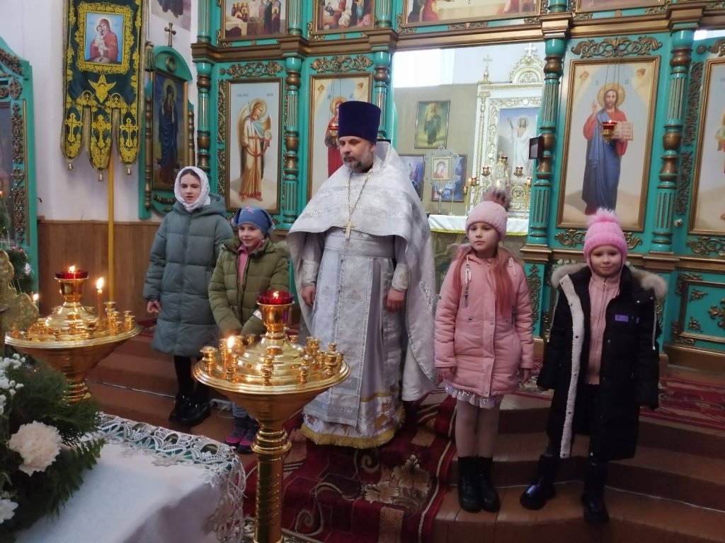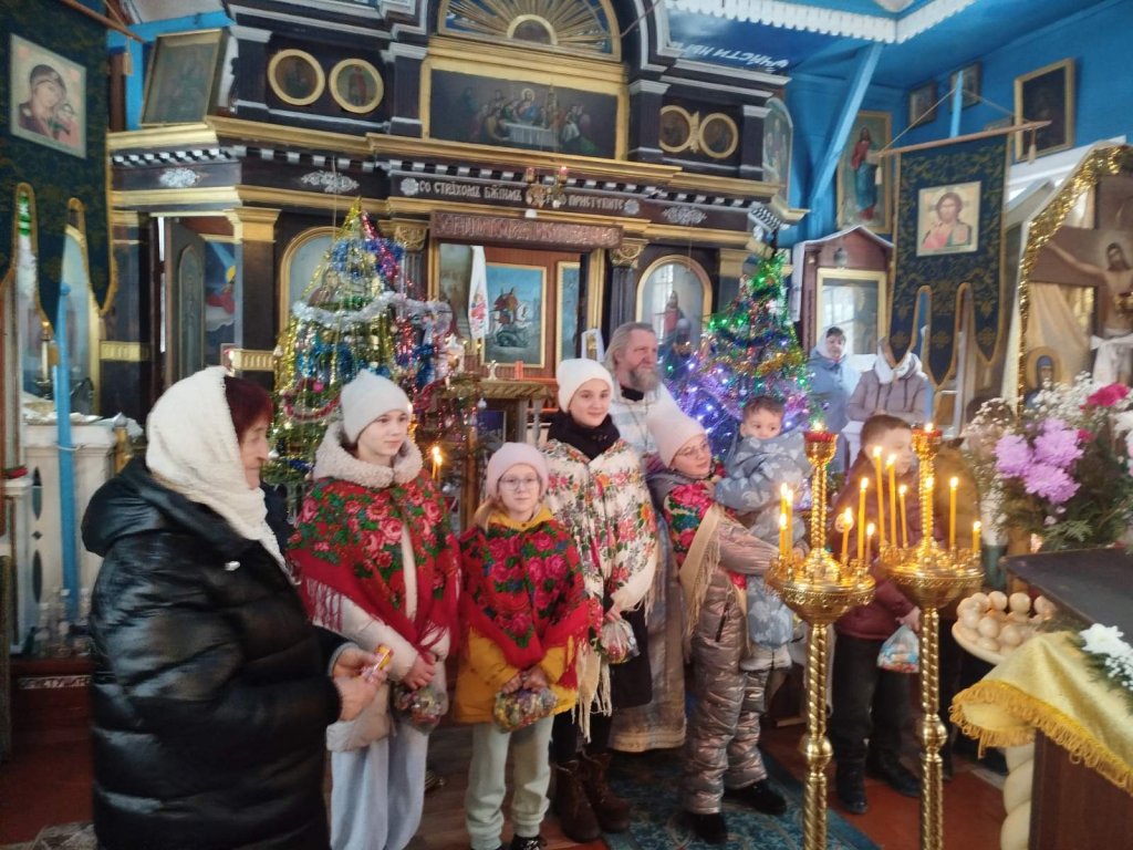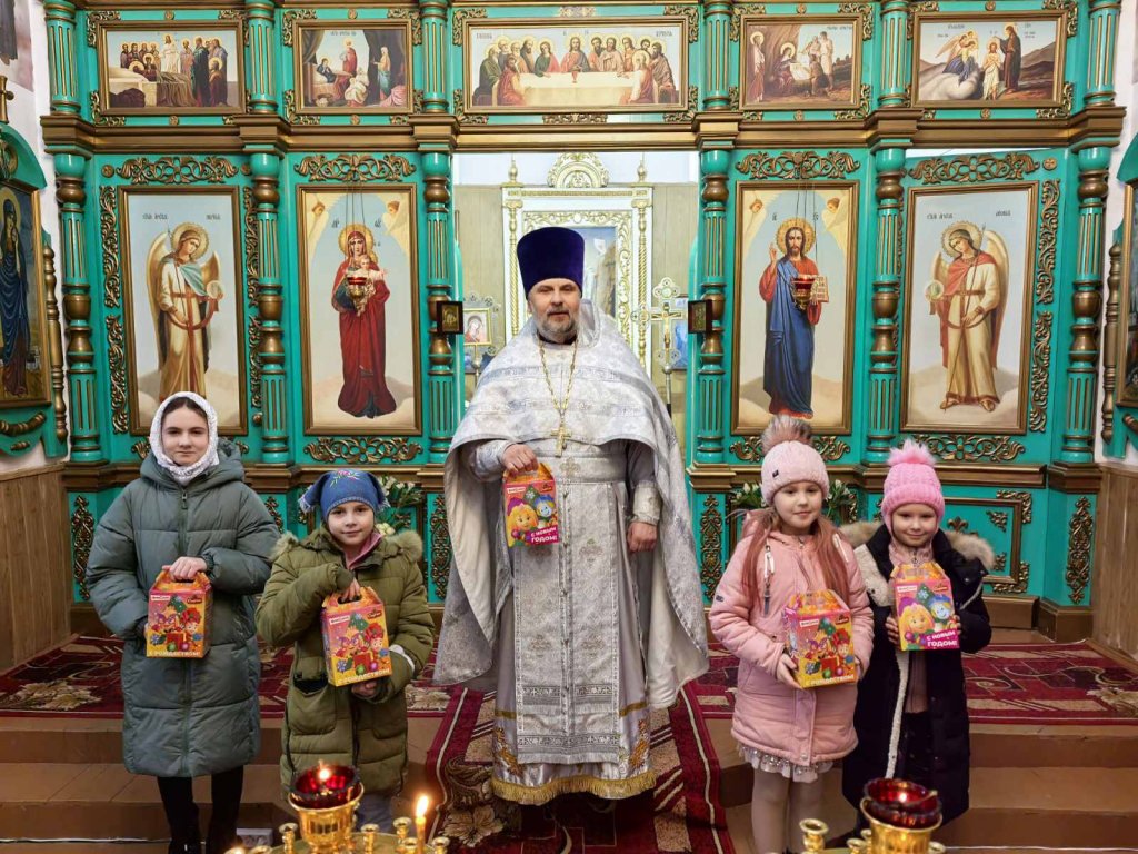 Дети славили Христа и радовали старшее поколение. А настоятель храма протоиерей Владимир Янчесов вручил христославам сладкие подарки.
