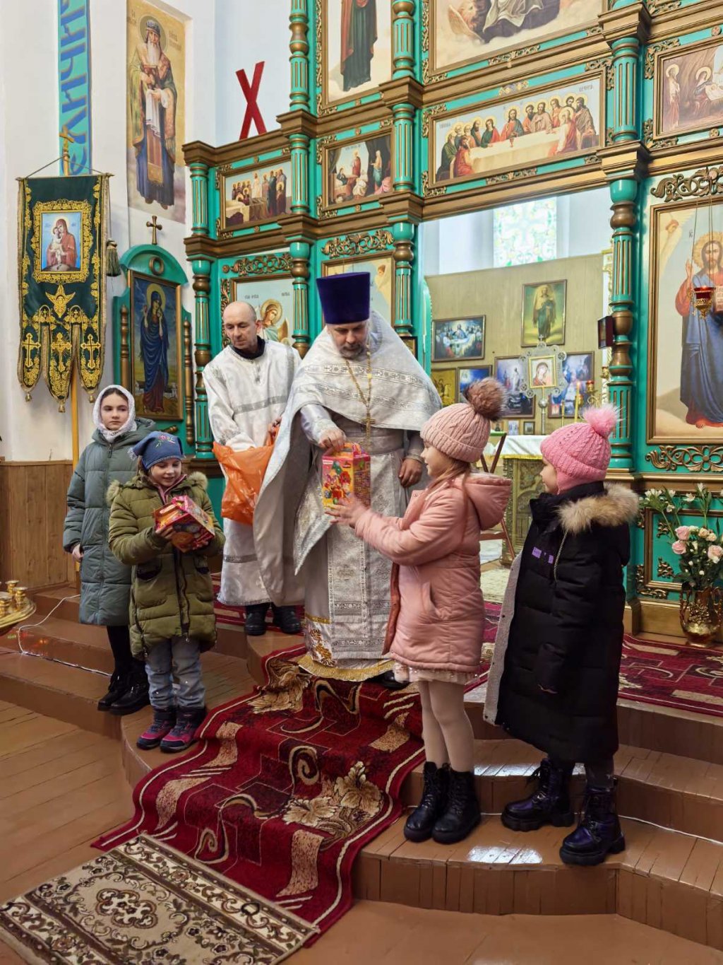 В завершение праздника каждый маленький участник концерта получил от батюшки сладкий рождественский подарок.