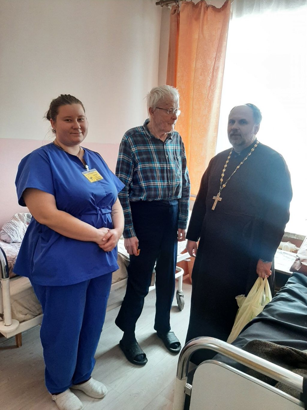 Отец Виталий поздравил пациентов и медицинский персонал с великим праздником, пожелал им крепости духа, терпения и скорейшего выздоровления. Особой радостью для пациентов стали не только тёплые слова, но и простые знаки внимания. Всех присутствующих угостили праздничными сладостями, что создало по-настоящему домашнюю, тёплую атмосферу и наполнило больничные палаты светом и уютом праздника.