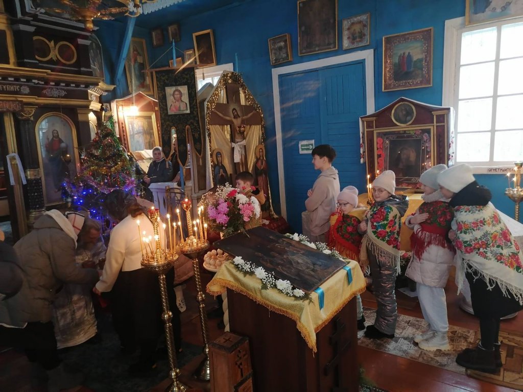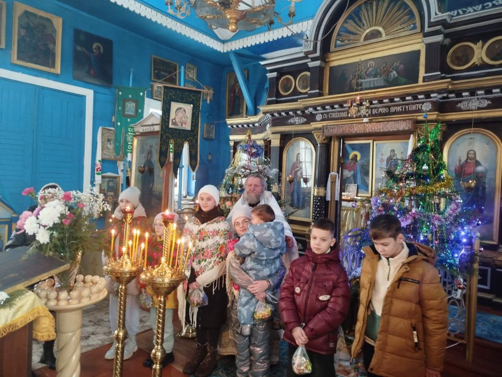 В светлый праздник Рождества Христова, после Божественной литургии в храме Покрова Пресвятой Богородицы в аг. Довск, учащиеся воскресной школы поделились рождественской радостью с близкими и приходской общиной.