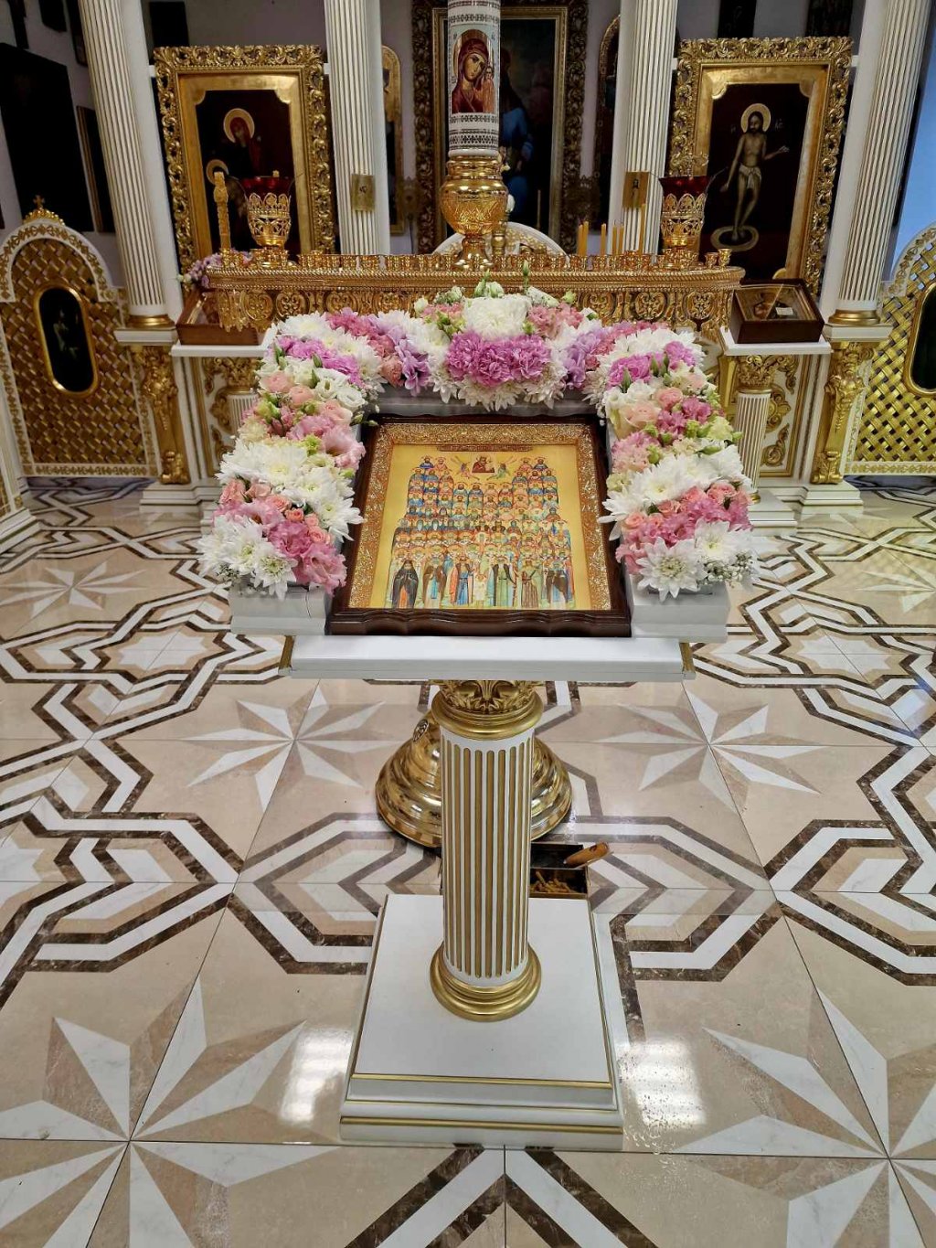 Экскурсия началась с храма в честь Собора всех Белорусских Святых при Гомельском епархиальном управлении. Здесь, в храме-музее, находятся богослужебные книги, старинные иконы, по которым можно проследить историю иконописи на территории Гомельской области. И это не просто музейные экспонаты, а святыни, используемые во время богослужения. Также в епархиальном управлении действует реставрационная лаборатория, где возрождаются иконы, пострадавшие в годы богоборчества.