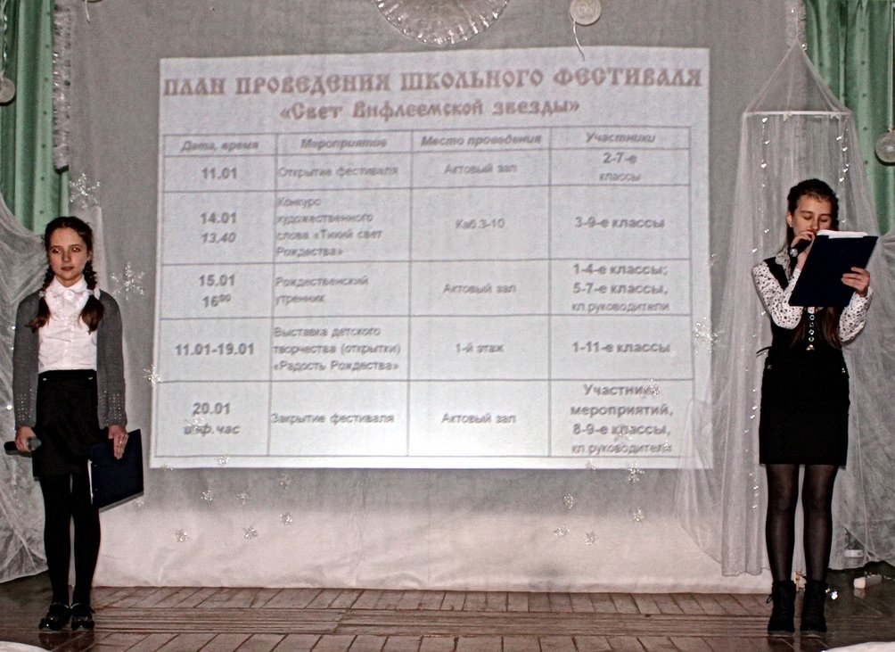 Первый учебный день третьей четверти средняя школа №4 г. Рогачёва начала торжественным открытием Рождественского фестиваля. Учащиеся 7 "А" классов поздравили всех с Рождеством Христовым и Святками, рассказали о значении для всего человечества пришествия в мир Господа Иисуса Христа. Также ребята познакомили младших школьников с православными традициями празднования Рождества Христова и Святок и пригласили принять участие во всех мероприятиях фестиваля, который продлится до праздника Крещения Господня. И, конечно же, юные христославы из 5 "А" класса порадовали всех колядками. Зрители искренне благодарили выступавших и их классных руководителей Жевнерову Татьяну Михайловну и Маньковскую Марию Николаевну. Святки в 4-й школе продолжаются!