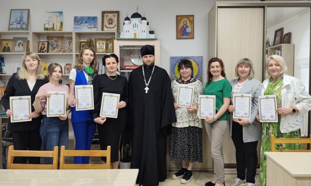 Благочинный церквей Рогачевского округа иерей Алексей Сергеев поздравил слушателей с окончанием курсов и пожелал, чтобы их жизненный путь был всегда в лоне Церкви Христовой. Во всех жизненных трудностях полагаться на Бога, который подает в Церкви Свои благодатные дары. Любить Бога и помочь ближнему обрести смысл жизни, согреть его своим сердцем, вселить в него радость и надежду. Быть «всем для всех» (1Кор.9.22), носить немощи страждущих. Излучать для всех радость, свет и тепло. Чтобы Он – Источник Любви, наполнил жизнь истинной любовью к ближнему.