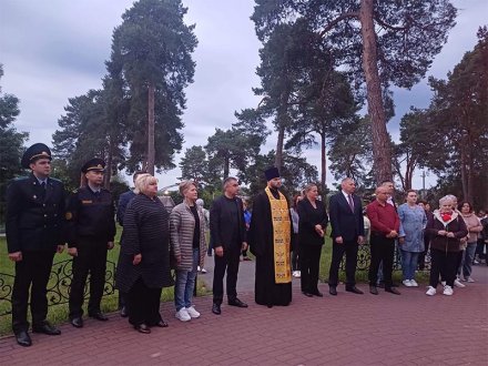 В знак общей скорби к обелиску были возложены цветы, а благочинный церквей Рогачевского округа иерей Алексей Сергеев отслужил заупокойную литию по погибшим в годы войны. В пастырском слове священник отметил: «Ветераны потихоньку уходят из этой жизни, остаётся всё меньше очевидцев. И задача нашего поколения, которое знает какой ценой дарован мир, не только рассказывать о войне. Мы должны знать, что сейчас идёт новое сражение за души молодого поколения, которое не знает тяжёлого времени на земле. Наша молитва за то, чтобы юные жизни не покрыла та горесть, которую перенесли ветераны. Это сражение за их жизни и души, чтобы они были сплочены, как их прадеды, верны своему народу и земле. Память тем, кто увековечил ценой собственной жизни тот мир и то благоденствие, которое мы с вами сейчас видим».