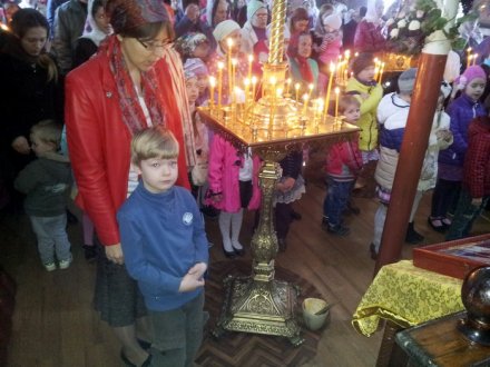 В понедельник Светлой седмицы Божественная Литургия была отслужена в первую очередь для детей, которые по понятным причинам не могли присутствовать на ночном Пасхальном богослужении. Но, праздник Воскресения Христова предназначен для всех, и дети разделили со взрослыми эту Божественную радость и причащались Тела и Крови Господней, а затем на крестном ходу несли все вместе Артос - освященный Пасхальный хлеб. На возглас священника: "Христос воскресе!" все дружно отвечали "Воистину воскресе Христос"