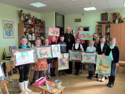 В первый апрельский день прошла встреча настоятеля православного храма протоиерея Алексея Смотрицкого с учениками второго класса художественного отделения школы Искусств. Священник рассказал ребятам о приближающемся празднике Пасхи. Объяснил значение воскресения Господа нашего Иисуса Христа и радость победы Христа над смертью. А юные художники показали свои работы, посвященные этому великому событию. И рассказали как они, под руководством своего преподавателя Якуниной Нины Анатольевны, готовятся к Пасхальному фестивалю.