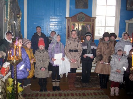 В день Рождества Христова в храме Святаго Духа д. Дворец Рогачевского благочиния дети под руководством заместителя директора Дворецкой школы Слепухиной Анны Николаевны и настоятеля Прихода иерея Владимира Янчесова провели праздничный концерт. Поздравили прихожан, а в ответ от прихода получили сладкие подарки.
