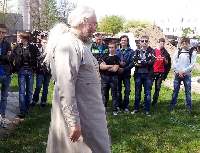 Ребята из 150 лицея г. Рогачева в рамках Пасхального фестиваля 23 апреля посетили строящийся православный храм. Настоятель прихода протоиерей Алексей Смотрицкий провел ребят по нижнему и верхнему приделам рассказал о будущем соборе и о том какими усилиями проводится строительсво новой церкви. Ребята с интересом ознокомились с необычными конструкциями храма, побывали на хорах, представили себе, как будет проводиться богослужение и церковное пение. После экскурсии все делились впечатлениями от увиденного и поблагодарили о. Алексей за интересный рассказ о новом храме.