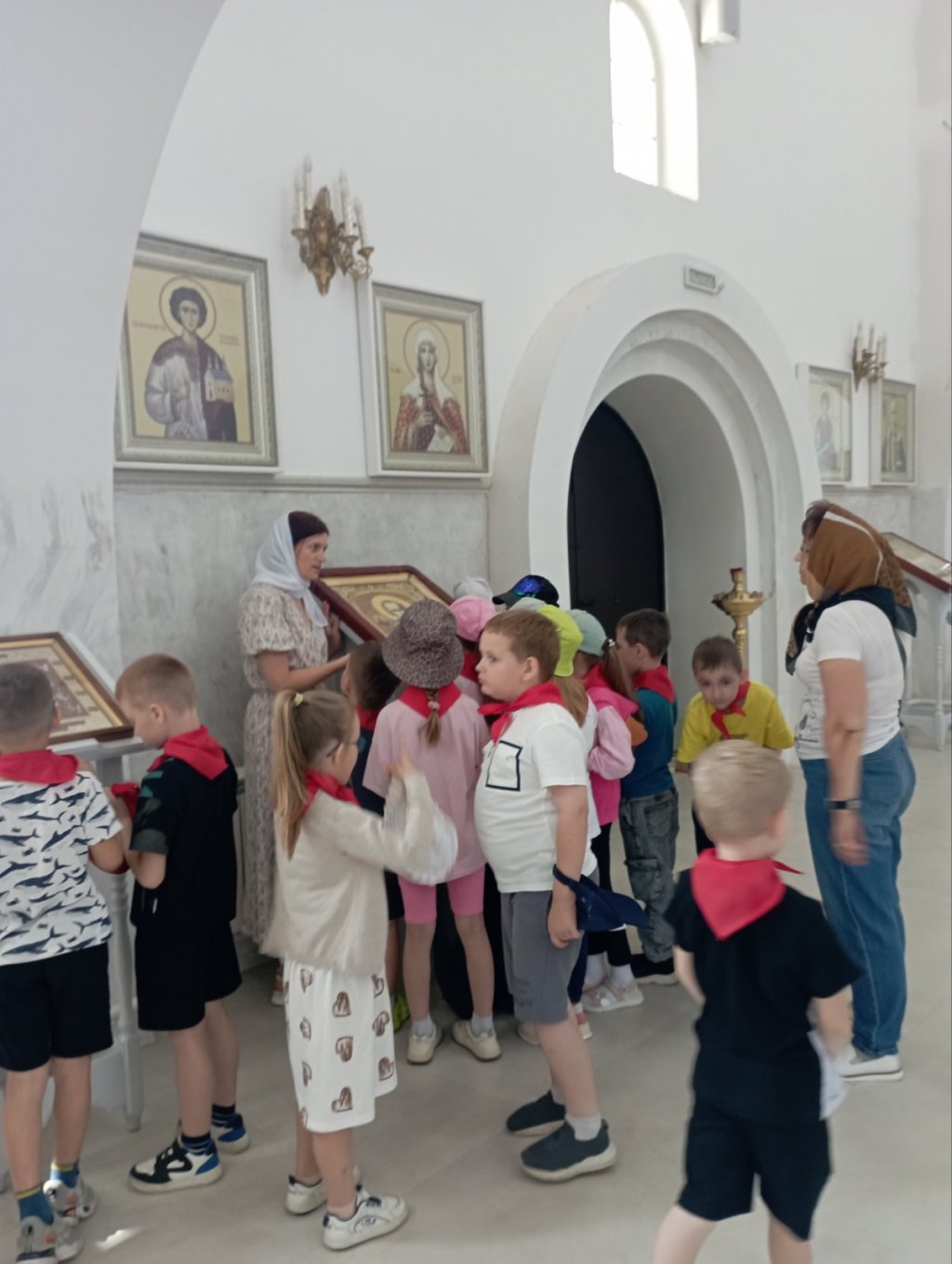Большой интерес ребят вызвало повествование о распятии Сына Божия по Его жертвенной любви ко всему человечеству, а также об Архангеле Михаиле, в честь которого освящён храм.