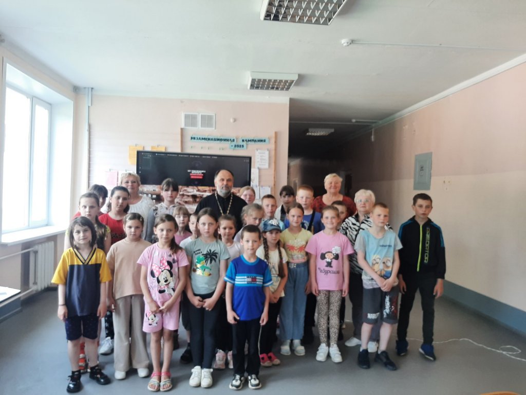 5 июня 2025г. протоиерей Николай Степанов, настоятель прихода храма святого Архангела Михаила в аг.Тихиничи провёл экскурсию для воспитанников летнего лагеря местной школы.