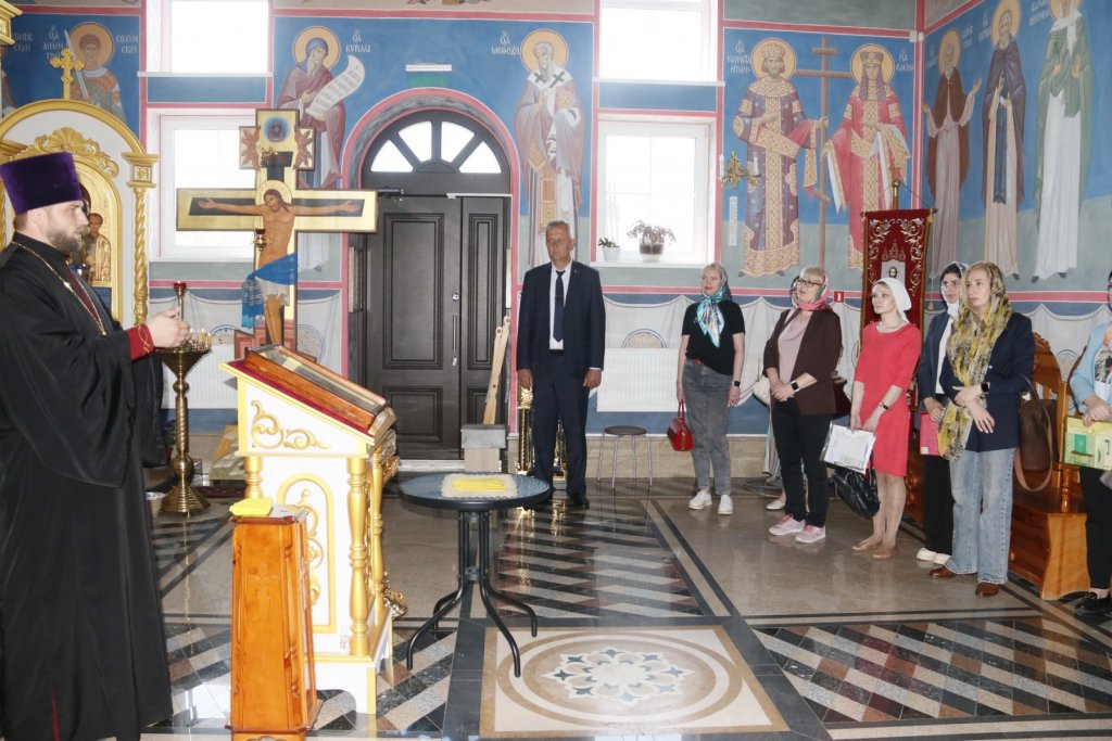 Специалист по приходскому просвещению Жевнерова Татьяна Михайловна встретила ребят и педагогов и рассказала, что в этот день отмечается престольный праздник храма: «Это день памяти небесной заступницы земли Белорусской преподобной Евфросинии Полоцкой, в честь которой освящен престол нижнего храма. В этом году в этот день отмечается 900-летие Спасо-Евфросиниевского монастыря в Полоцке (1125 год).
