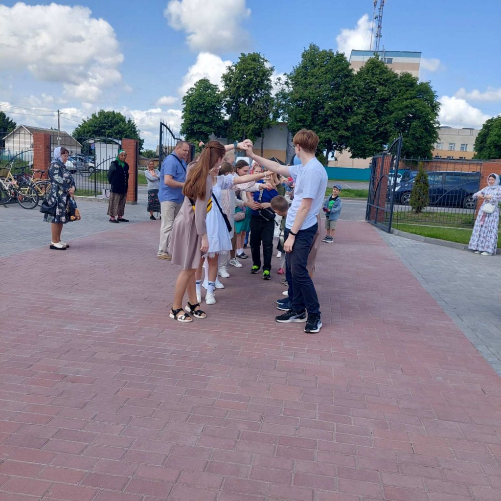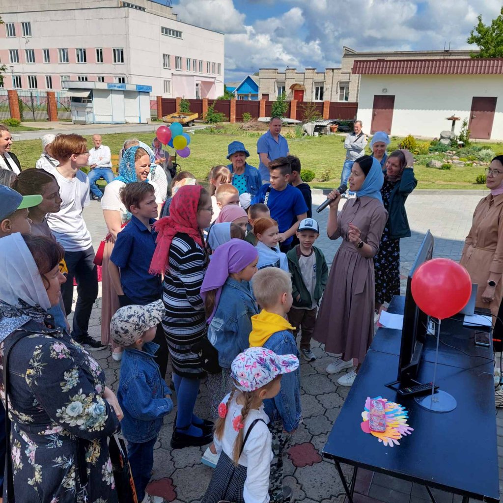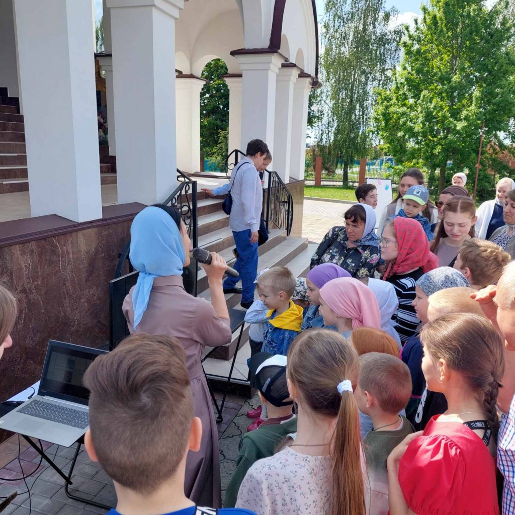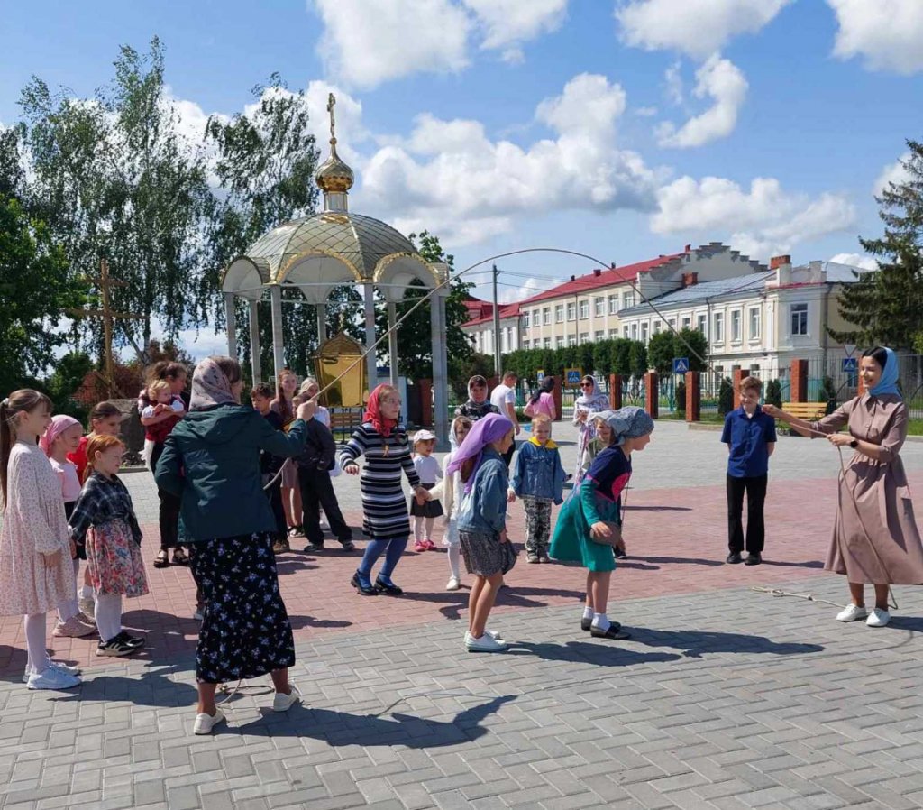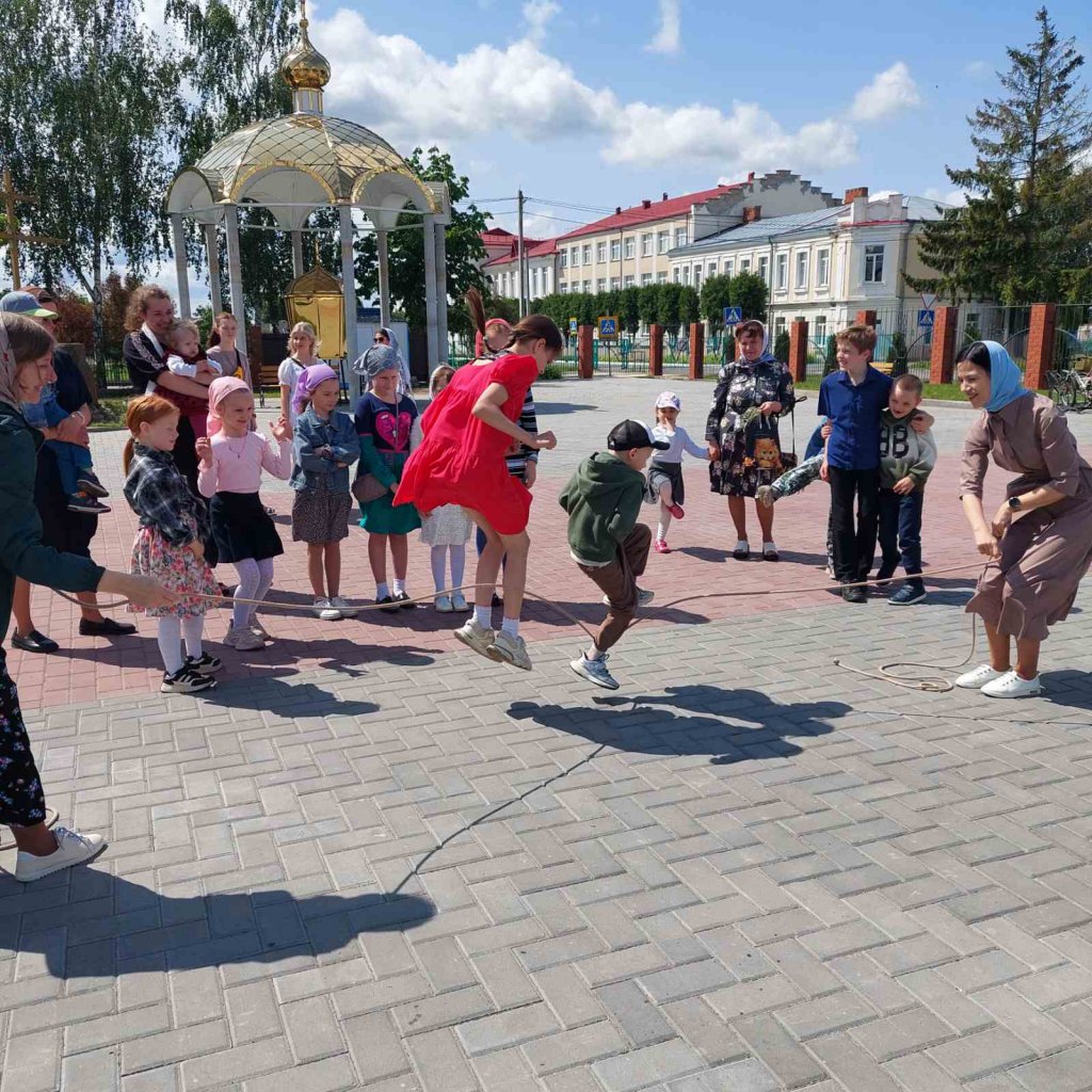 После воскресной Литургии юных прихожан ожидали спортивные и познавательные задания. Ребята отгадывали загадки, пытались назвать закрытый предмет только по одной маленькой части, танцевали, прыгали на скакалке, пели и участвовали в народных играх.