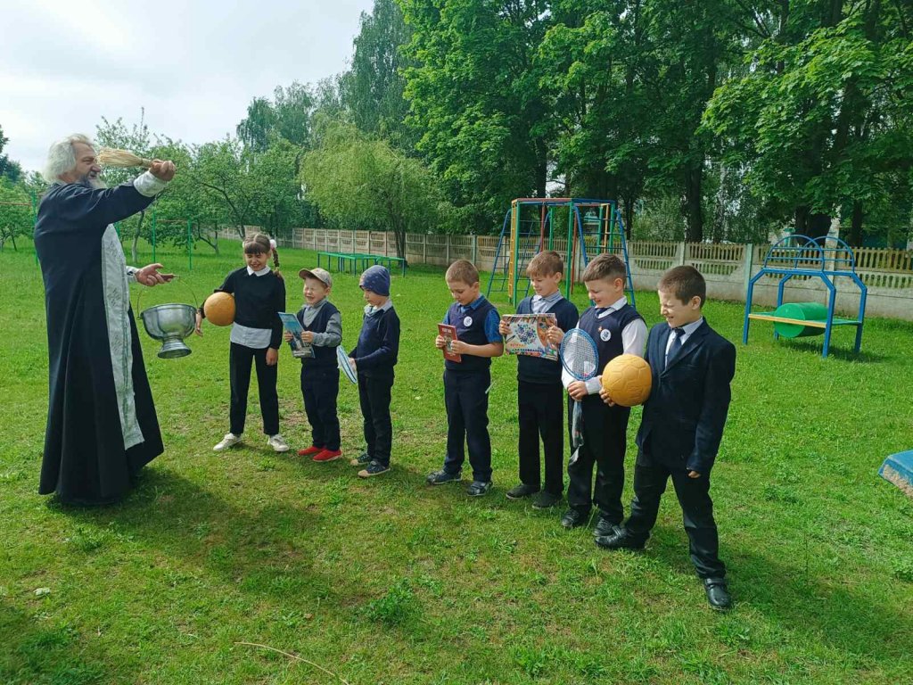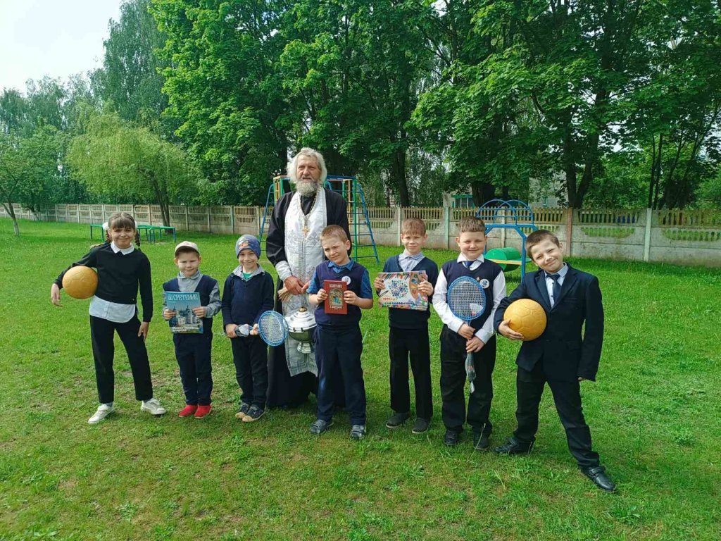Накануне 1 июня, Международного дня защиты детей, настоятель храма Святого Духа в аг. Дворец протоиерей Владимир Янчесов присутствовал на открытии школьного летнего лагеря в ГУО «Дворецкая средняя школа имени В.В.Скрыганова».