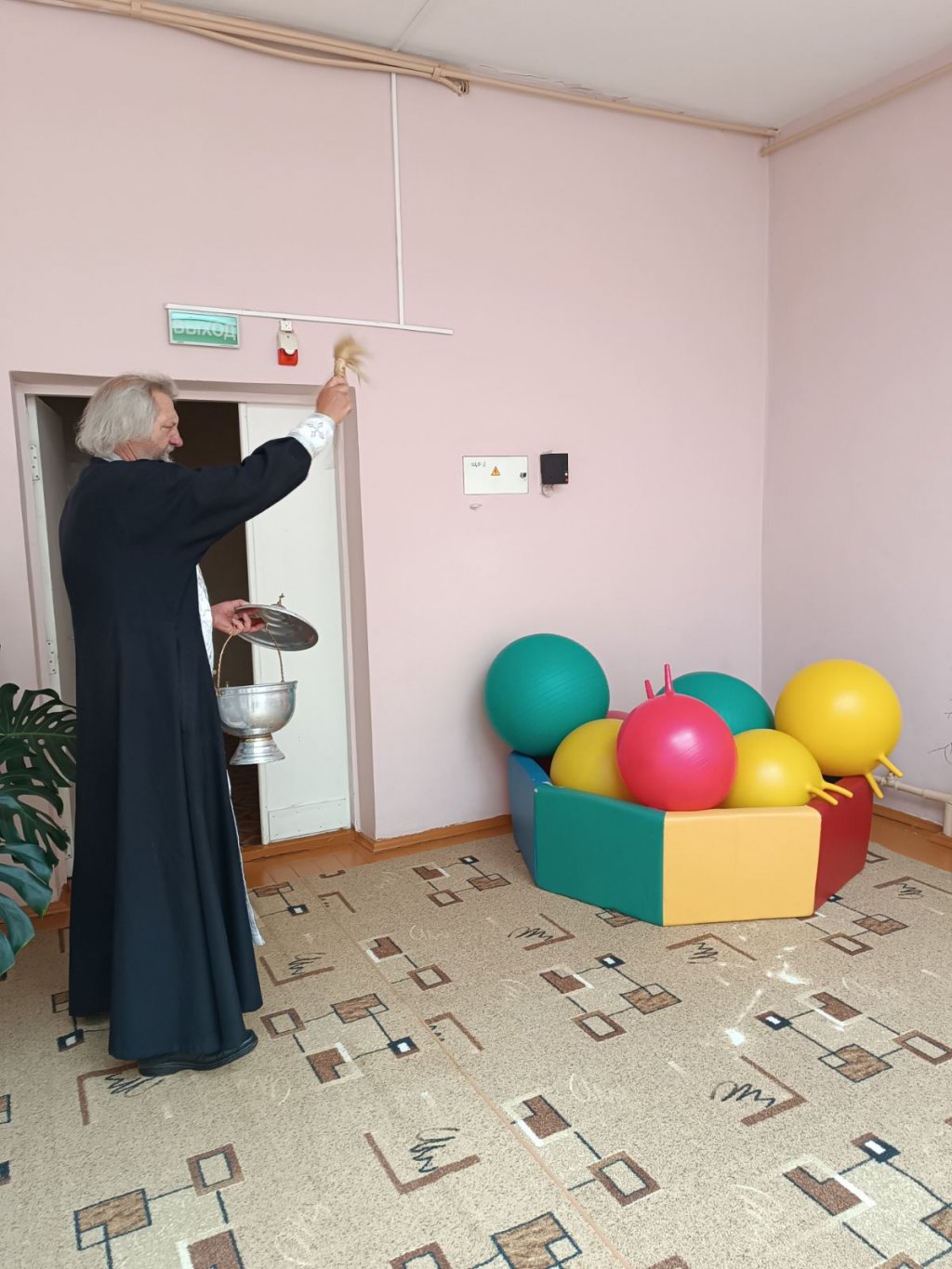 Вместе со школьниками священник помолился, окропил святой водой деток, а затем - начальную школу, спортивную площадку и бассейн. Чтобы ребята возрастали в вере, настоятель храма подарил ребятам детскую Библию, для подвижных игр передал им спортивный инвентарь.