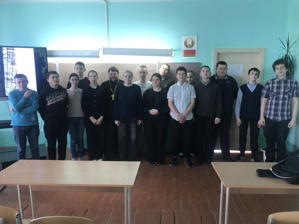 30 мая протоиерей Владимир Руденок, настоятель прихода храма святых апостолов Петра и Павла в аг.Поболово, встретился с учащимися 9 класса местной школы.