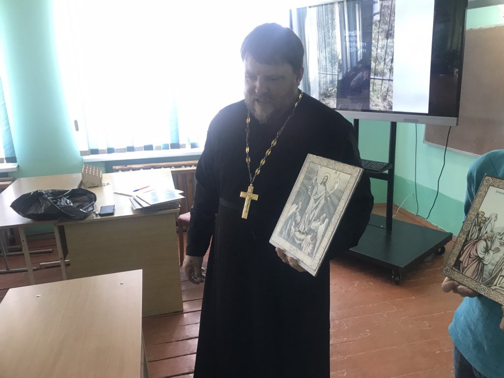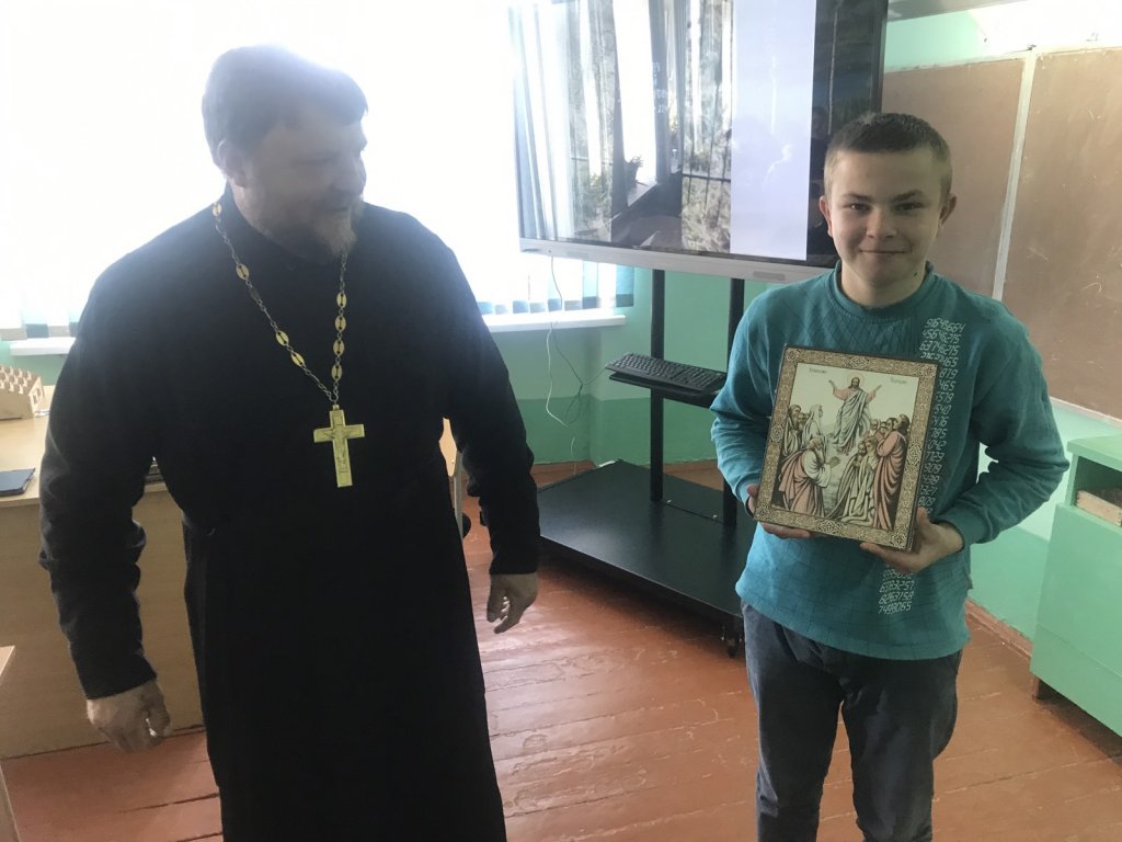 Батюшка рассказал старшеклассникам о Вознесении Господнем. Ребята узнали, что название праздника отражает суть события — Вознесение на Небо Господа Иисуса Христа, то есть, окончание Его земного служения. Одновременно это Его прощание с учениками, которых Он учил по-настоящему понимать Священное Писание, говорил им о Своей власти на Небе и на земле, о том, что они избраны проповедовать Евангелие всем народам, крестить их и учить всему, что Он заповедал. Перед Своим Вознесением Господь обещал ученикам, что будет с ними во все дни до скончания века.