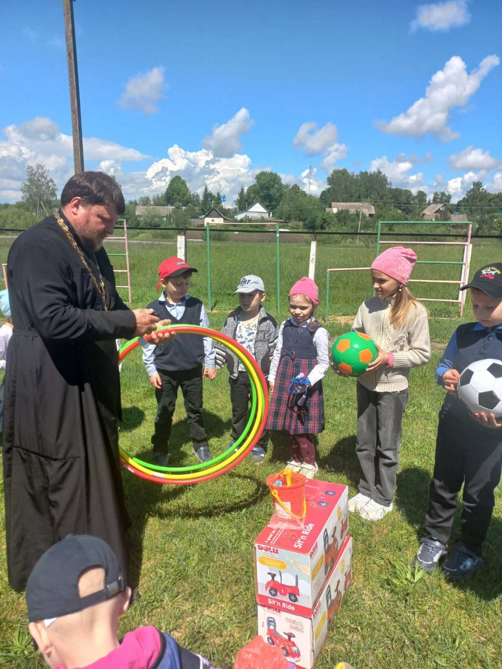 30 мая протоиерей Владимир Руденок, настоятель прихода храма святых апостолов Петра и Павла в аг.Поболово, посетил местный детский сад. К Международному дню защиты детей священник подготовил для всех групп детского сада игрушки и спортивный инвентарь.