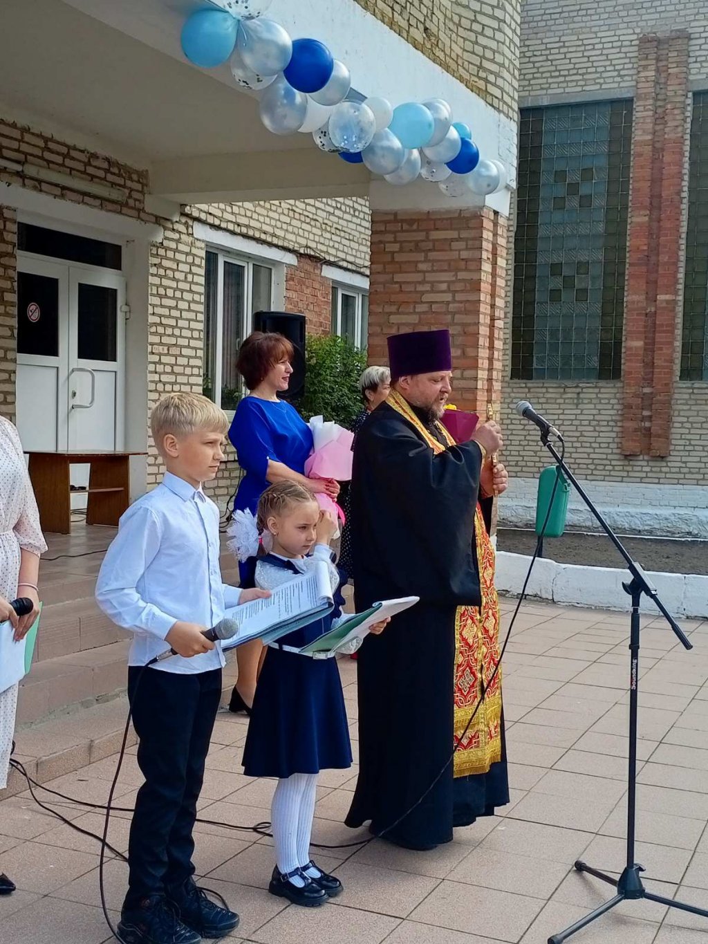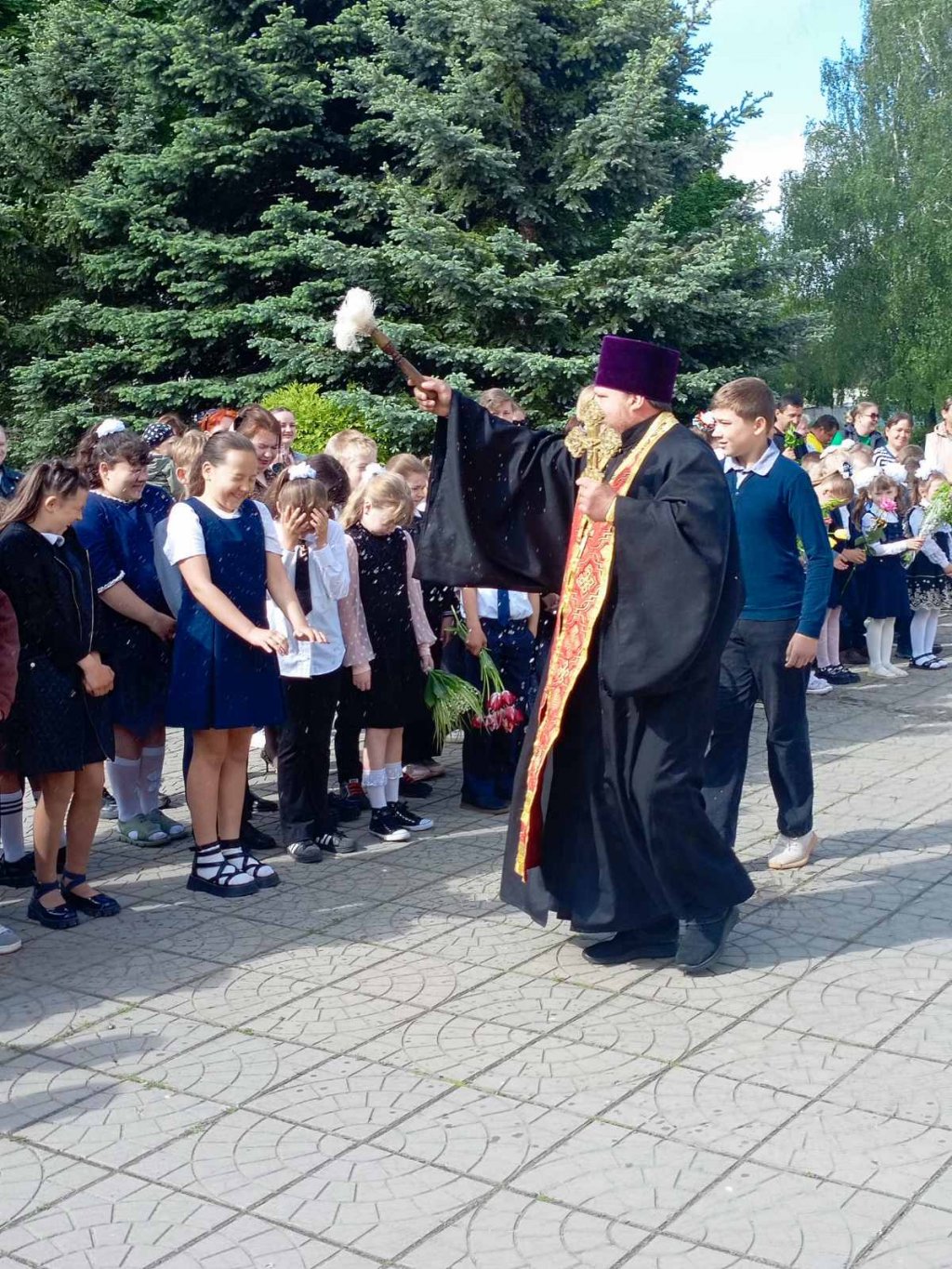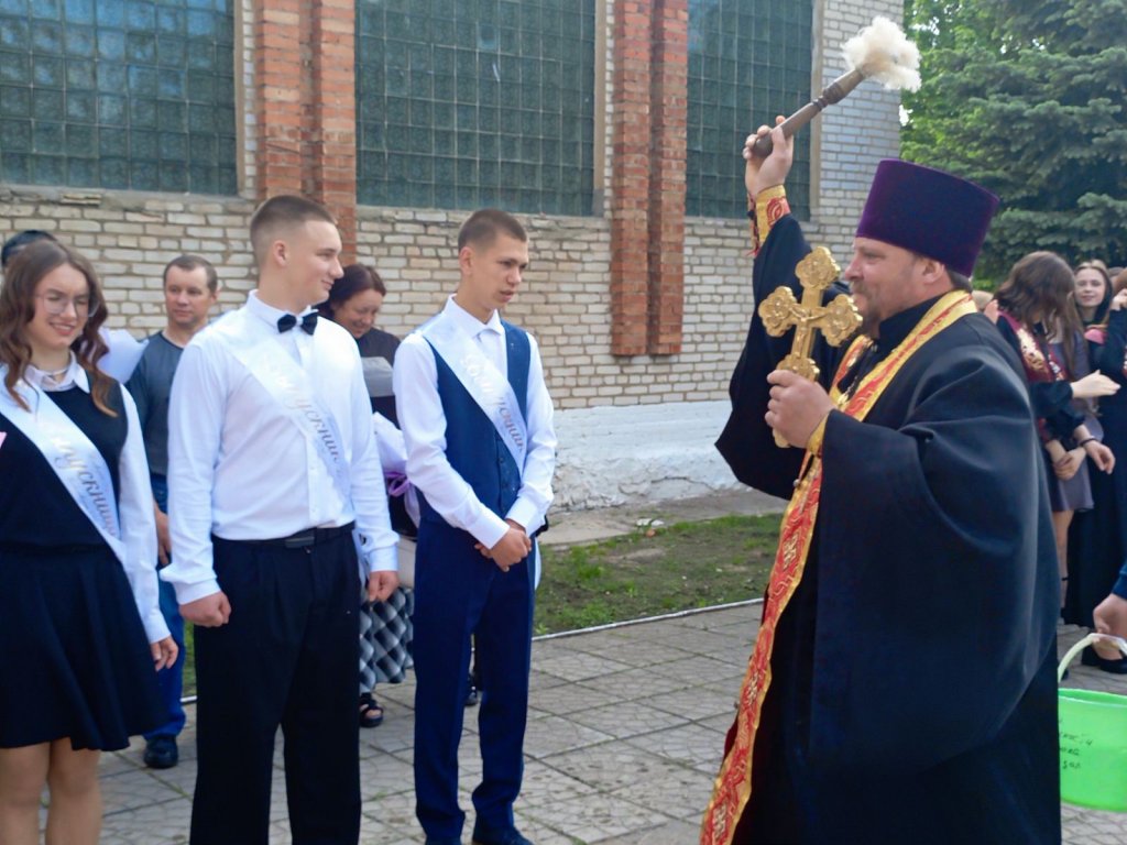 Настоятель прихода храма святых апостолов Петра и Павла в аг.Поболово протоиерей Владимир Руденок принял участие в торжественной линейке, посвященной празднику последнего звонка.