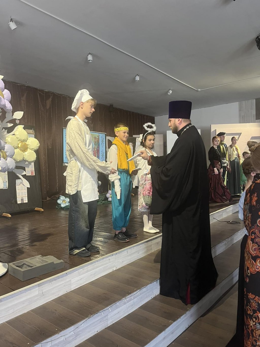 Со словами благодарности за нелёгкий труд священнослужитель вручил педагогам и актерам сладкие подарки. Искренне благодарили учителей за духовно-нравственное воспитание детей родители учащихся.