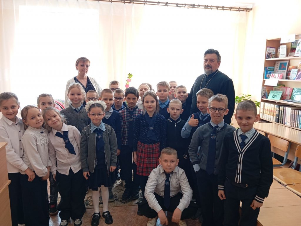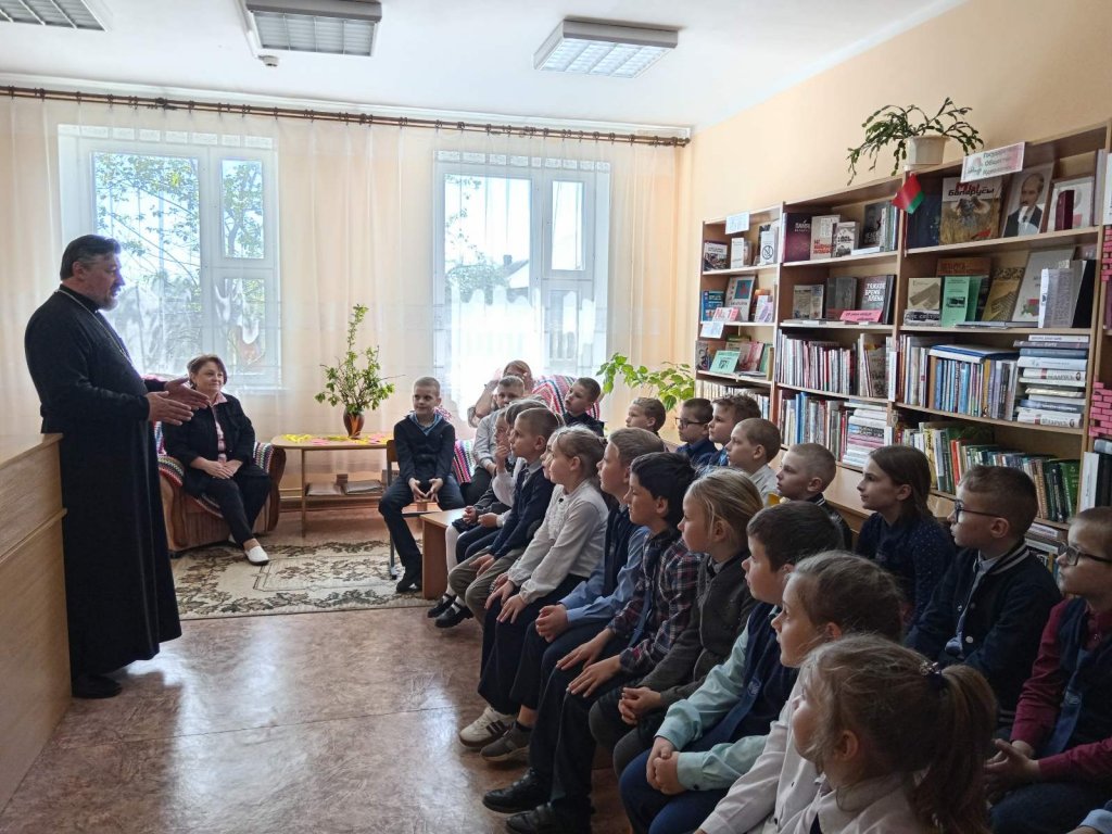 К учащимся, пришедшим в библиотеку, с пастырским словом обратился настоятель храма протоиерей Николай Степанов и раскрыл для детей смысл и значение Воскресения из мертвых Богочеловека Господа Иисуса Христа.