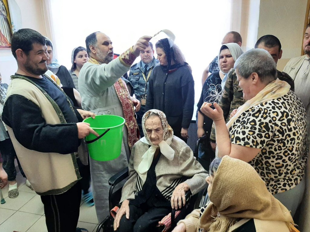 Батюшка поздравил подопечных пансионата с Пасхой, окропил святой водой и пожелал здравия, жить дружно, заботясь друг о друге, как в большой семье. В завершении встречи насельникам пансионата были вручены от прихода сладкие угощения.