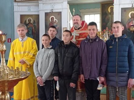 На Литургии присутствовали не только прихожане, но и воспитанники Городецкой специальной школы-интернат. Ребята причастились Святых Христовых Таин и приняли участие в крестном ходе.