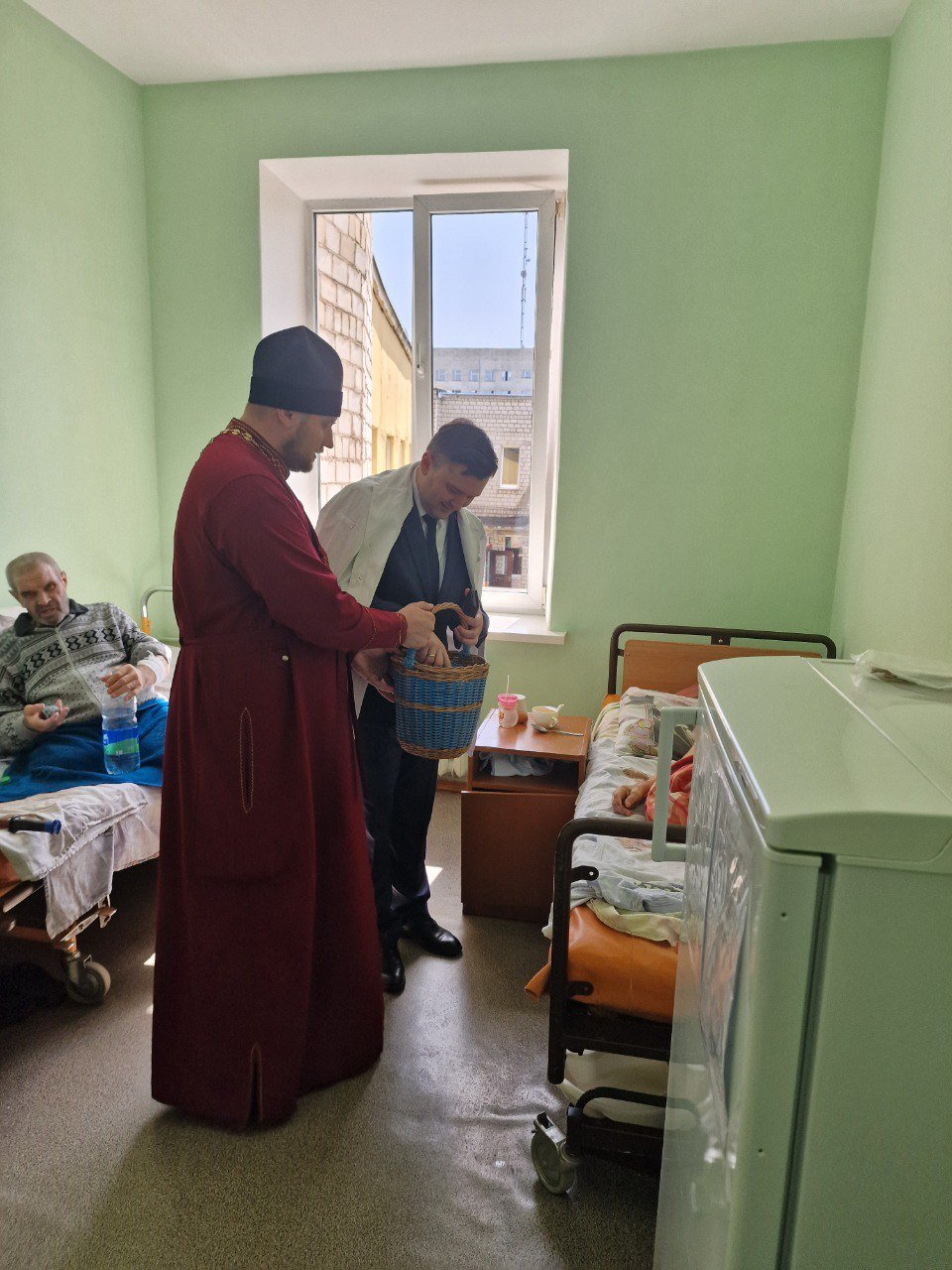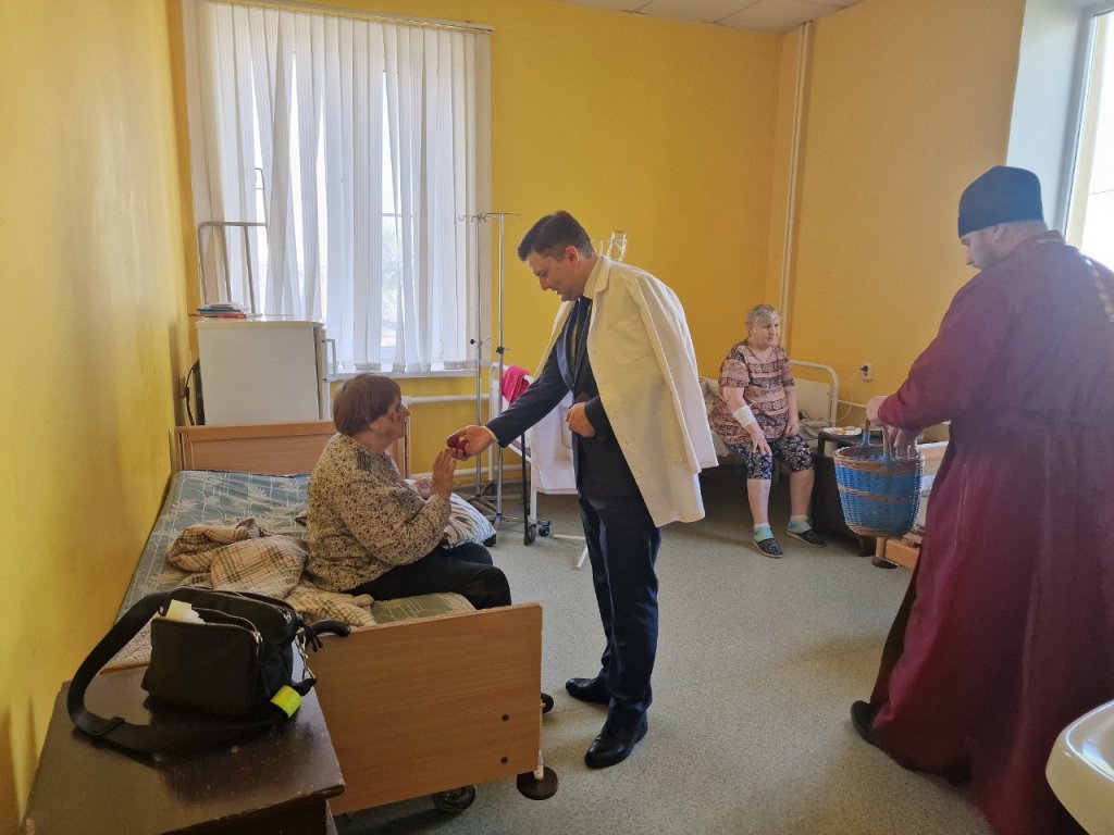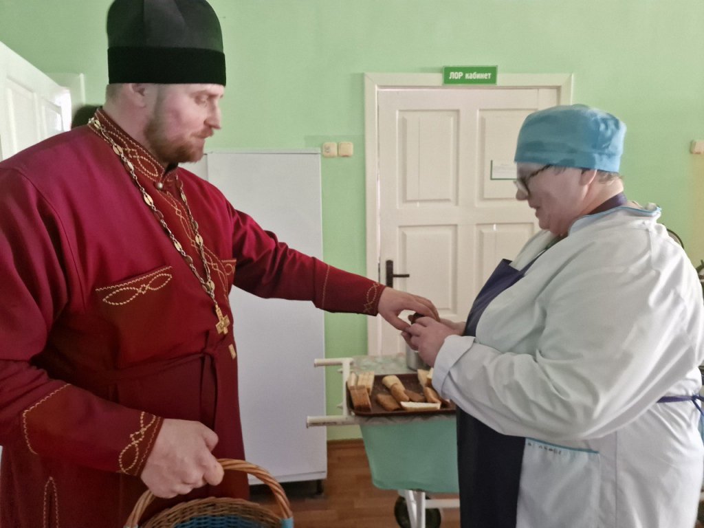 22 апреля благочинный церквей Рогачевского округа иерей Алексей Сергеев совместно с главным врачом УЗ «Рогачевская ЦРБ» Максимом Юрьевичем Шестопаловым навестил пациентов больницы, поздравил их и медицинский персонал со Светлым Христовым Воскресением.