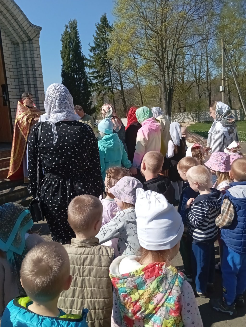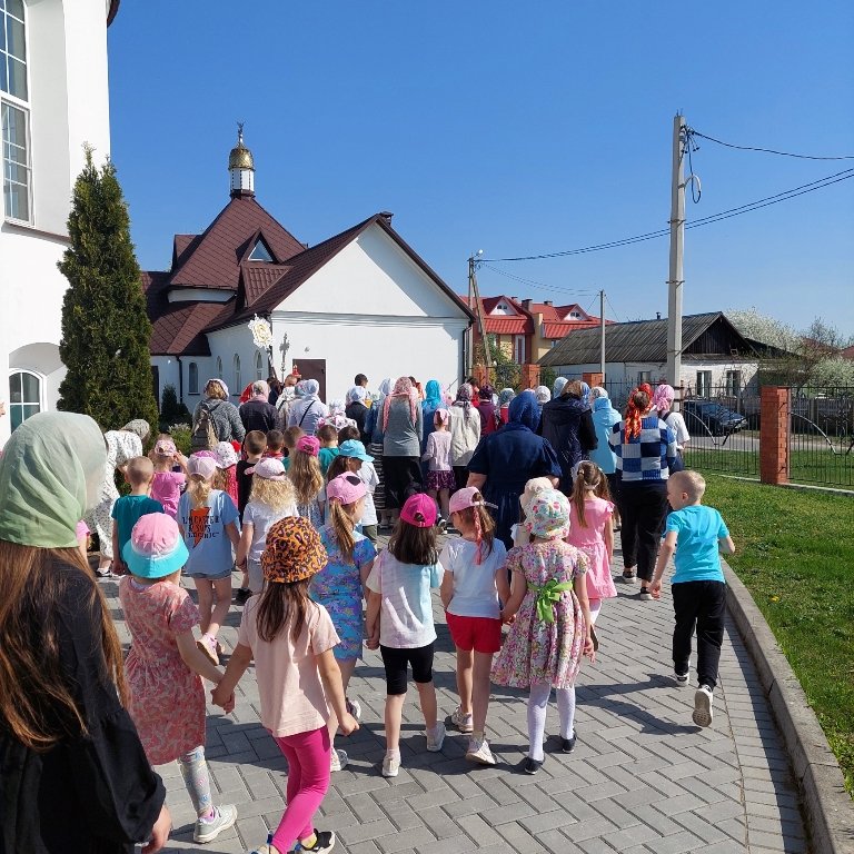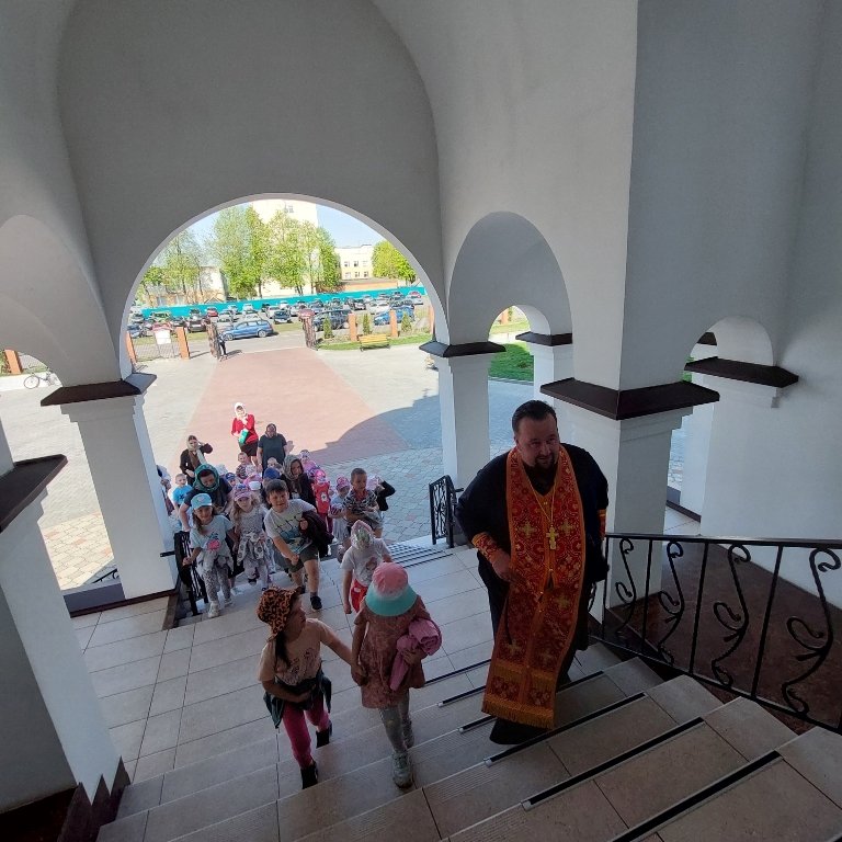 В приходе храма Святого Архангела Михаила аг. Тихиничи 21апреля, в Светлый Понедельник, на богослужение приехали воспитанники дошкольного центра развития ребёнка, в храме святых апостолов Петра и Павла в аг.Поболово и храме Святого Духа аг.Дворец – молитву совершали учащиеся местных школы и сада, а на приходе храма святого благоверного князя Александра Невского г.Рогачёва – воспитанники ГУО «Детский сад №7 г.Рогачёва».