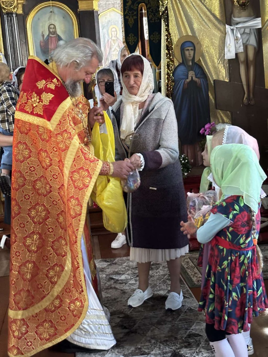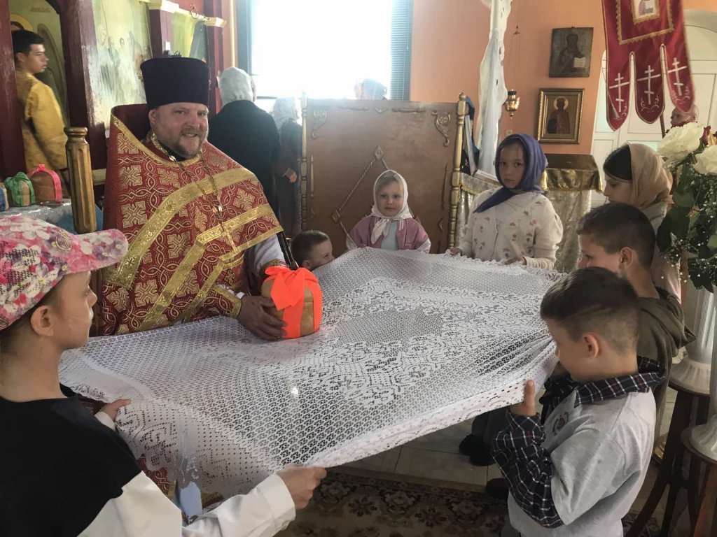В этот день маленькие прихожане повсюду – их голоса громче слышны, когда верующие исполняют молитвы «Верую» и «Отче наш». Они дежурят возле лампад и подсвечников, в полной готовности зажечь случайно загашенные огоньки или убрать догоревшие свечи, и очень стараются со всем справиться. Дети даже могут возглавлять шествие крестного хода в стихарях, с крестами, хоругвями и образами. Во время крестного хода на приходе храма святых апостолов Петра и Павла в аг.Поболово дети сами несли артос (пасхальный хлеб).