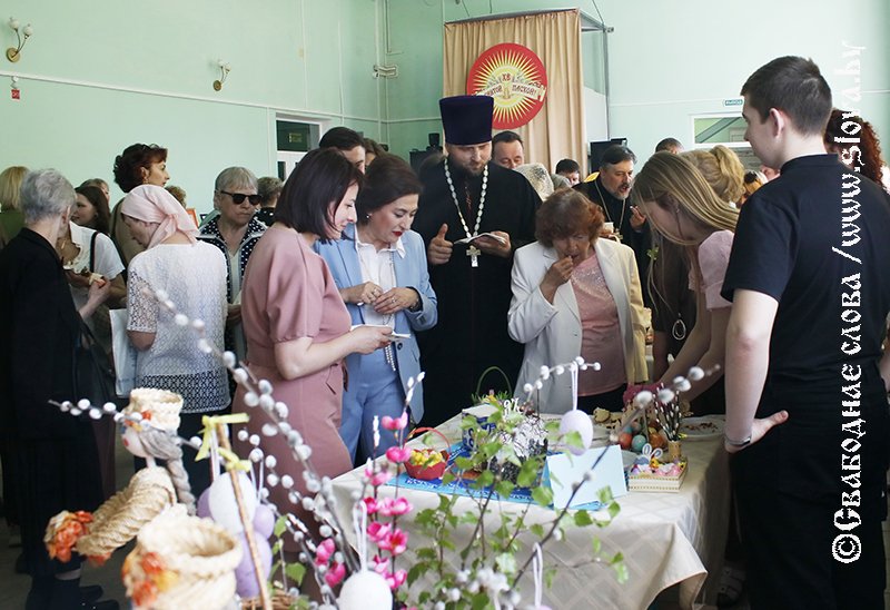 Жители города и района заранее собрались в фойе Рогачевского центра культуры и народного творчества, чтобы полюбоваться оригинальным оформлением и насладиться неповторимым вкусом пасхальной трапезы.