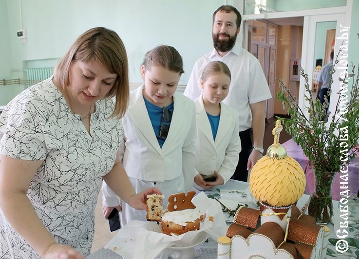 По доброй традиции XVIII Пасхальный фестиваль "И Божия нисходит благодать..." в г.Рогачёве открылся вкуснейшим конкурсом «Пасхальный кулич», и сопровождался выставкой икон ручной работы прихода храма святого благоверного князя Александра Невского в г.Рогачеве, художественной композицией «Свет духовный и земной» учащихся ГУО «Детская школа искусств г.Рогачева имени Анатолия Каплана».