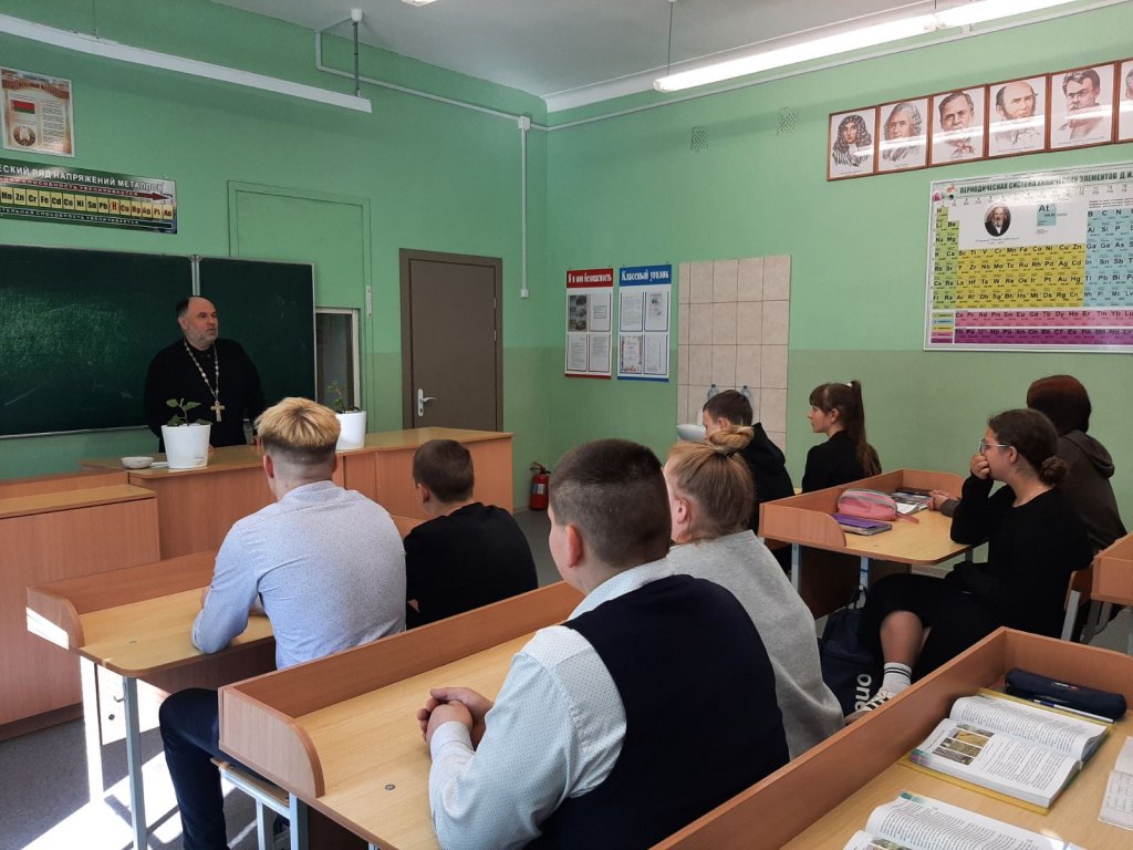 4 апреля состоялась встреча настоятеля прихода храма Покрова Пресвятой Богородицы в аг.Довск протоиерея Виталия Левчука с десятиклассниками Ильичевской школы.