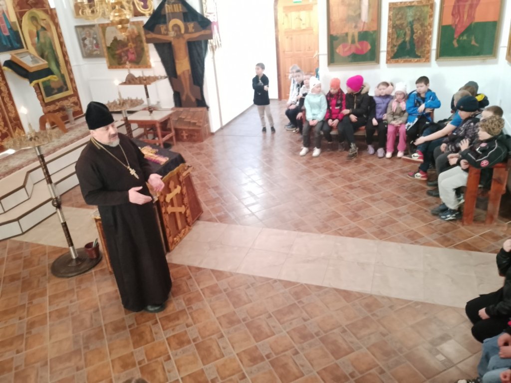28.03.2025г. протоиерей Николай Степанов, настоятель прихода храма Святого Архангела Михаила аг.Тихиничи, провёл экскурсию для учащихся ГУО "Тихиничская средняя школа имени А.А.Осипова".
