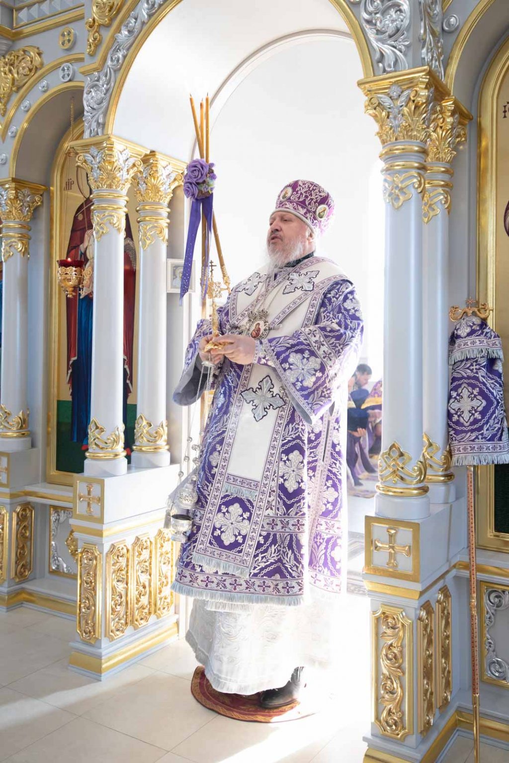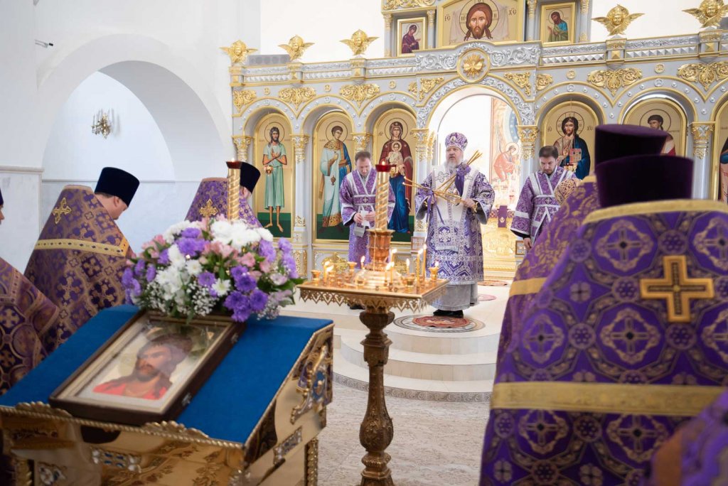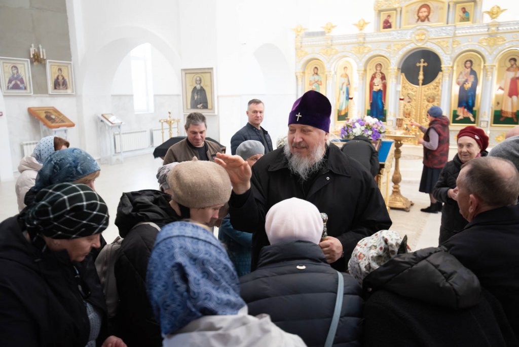 Далее архипастырь обратился к прихожанам и духовенству со словом назидания, поздравил причастников с принятием Святых Христовых Таин и преподал всем архипастырское благословение.