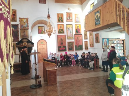 В ходе встречи священник рассказал ребятам о Спасителе мира Господе Иисусе Христе и о сути православной веры. Так же настоятель прихода объяснил детям, как устроен храм и рассказал о правилах поведения в нём. Большой интерес у ребят вызвало повествование о распятии Сына Божия, нашего Спасителя, а также об Архангеле Михаиле, в честь которого освящён храм.