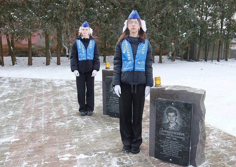 На Рогачевщине цикл тематических мероприятий ко Дню памяти воинов-интернационалистов 14 февраля открыл районный автопробег «Дорогами памяти». По традиции к ветеранам войны присоединились десятки рогачевцев – представители трудовых коллективов и молодежь. Автоколонна проследовала по маршруту Тихиничи – Рогачев – Осинники – Колосы – Турск – Довск. Здесь нашли последний покой пятеро наших земляков: Юрий Блинцов, Сергей Юрченко, Петр Касьянов, Семен Бондарев и Николай Доманцевич – посмертные обладатели орденов Красной Звезды.